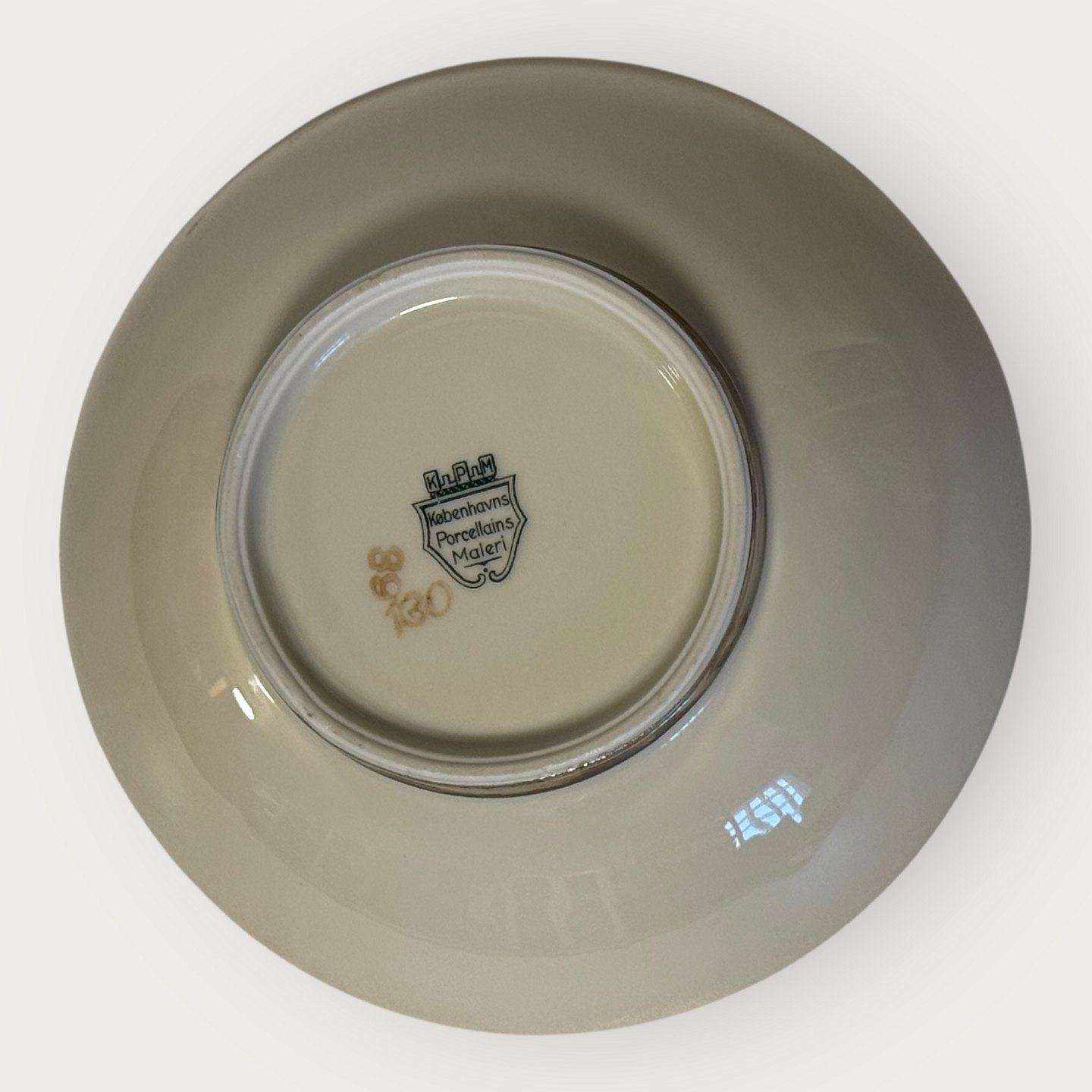 Sort rose, med Plantin kant, KPM, Lyngby, lille skål, 15cm i diameter *lidt slid på sølvkanten ellers pæn stand*