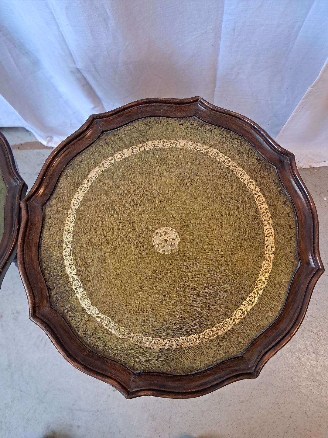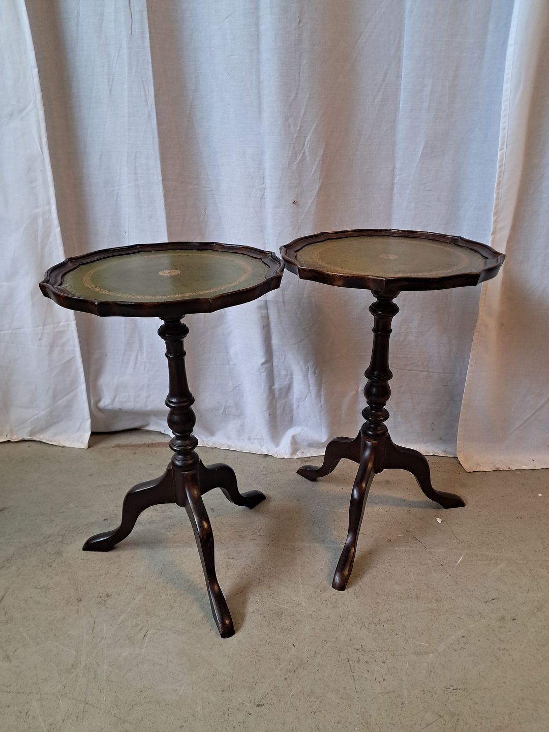 2 Pynteborde i bøgetræ med kunst læder indlæg, fra 1990erne.