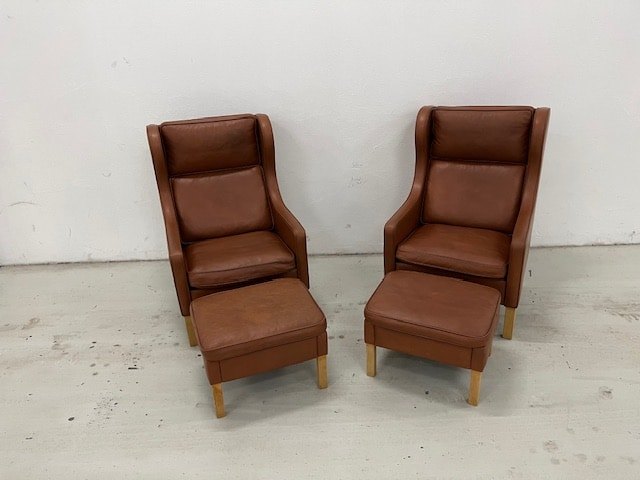 Mogens Hansen MH195 øreklapstole med tilhørende fodskamler