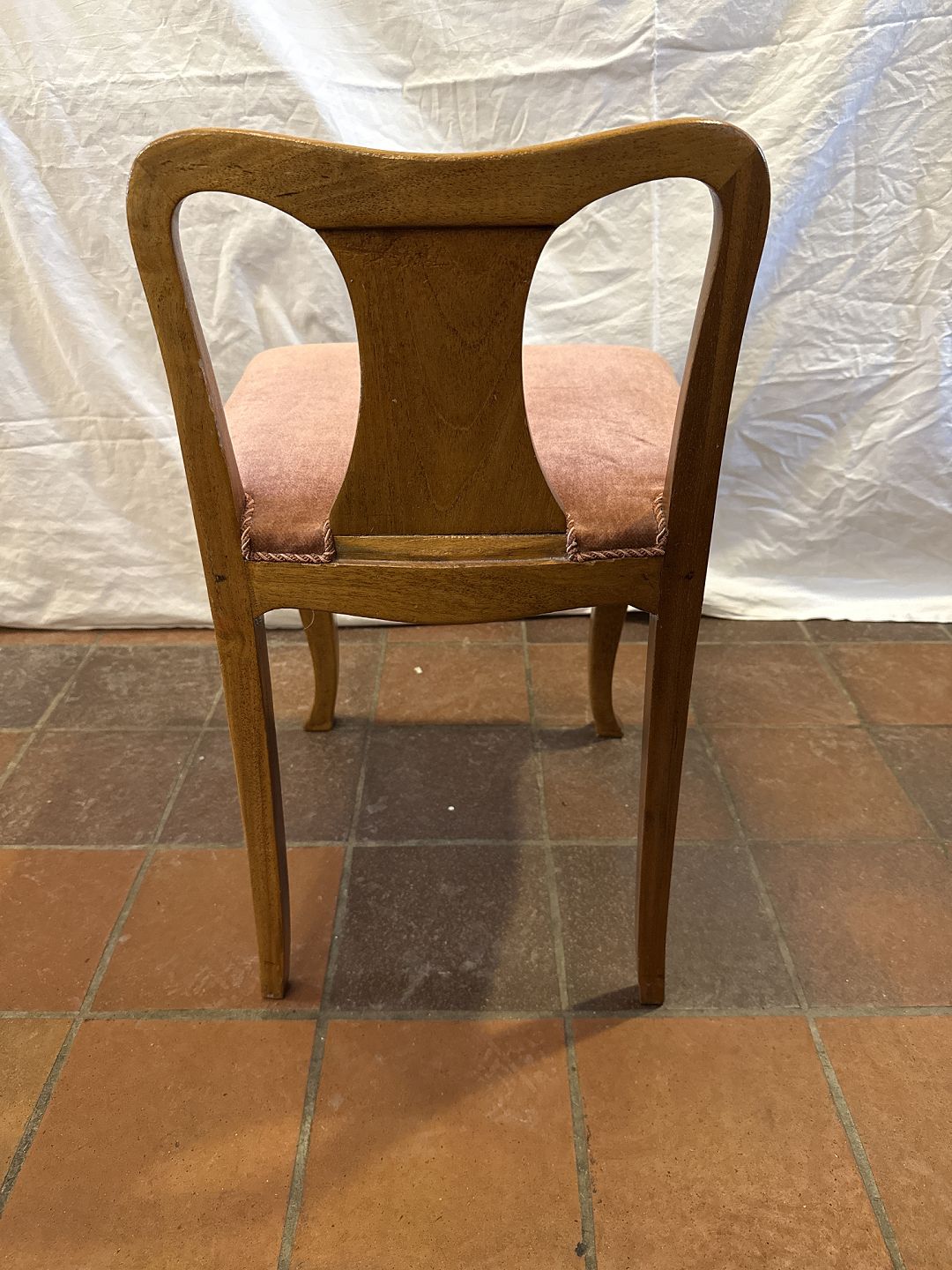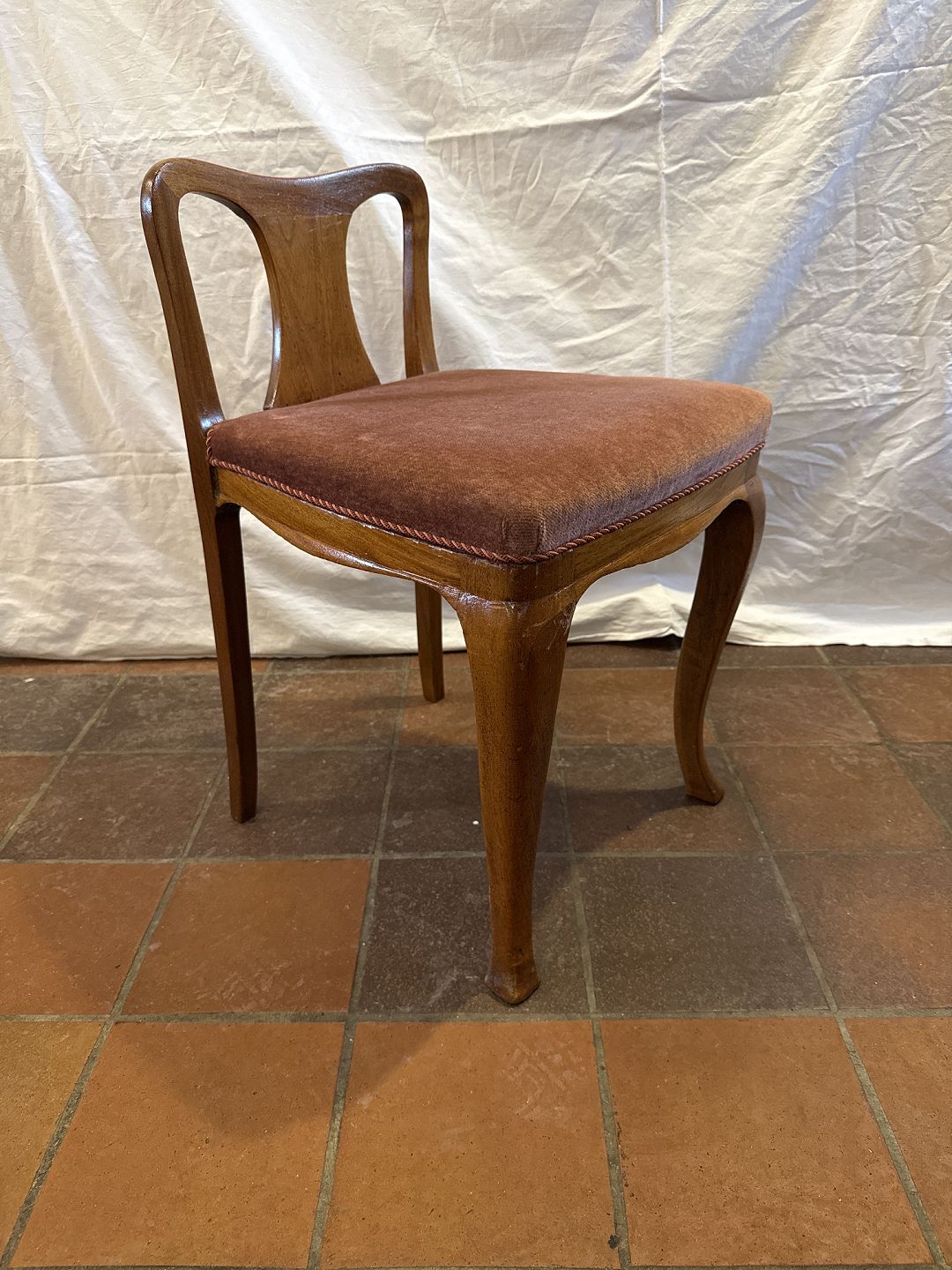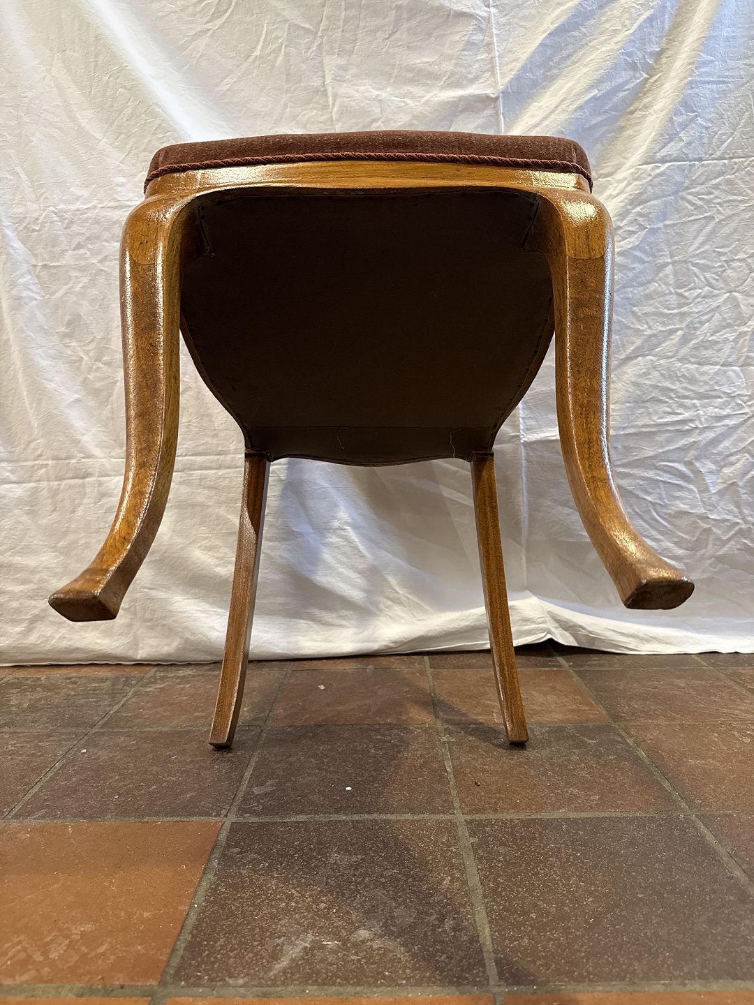 Ukendt formgiver lav rygget stol i lakeret mahogni m. sæde i velourstof.
