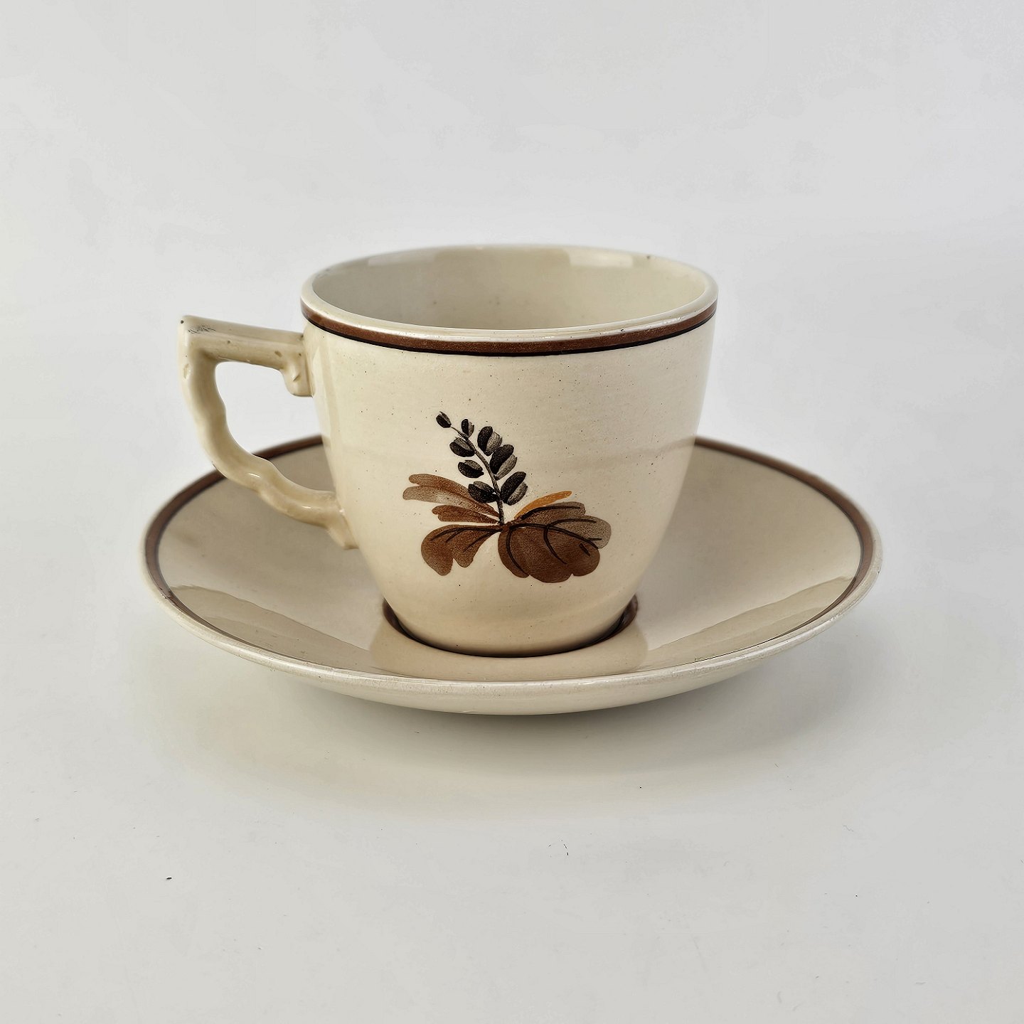 Knud er cremefarvet fajance dekoreret med flettet kant og brune og orange blomster. Stellet blev produceret i år 1934-1963.