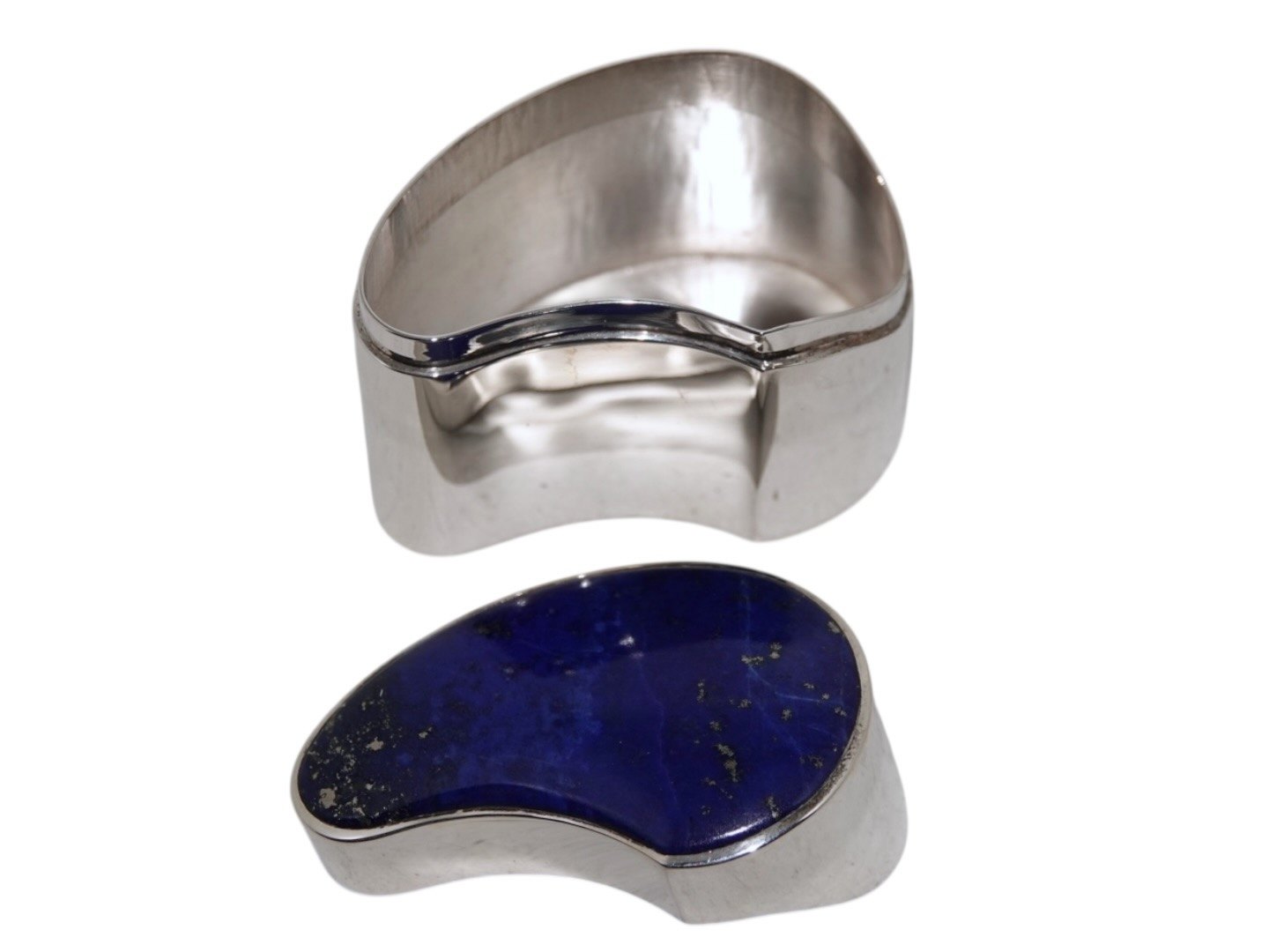 Allan Børge Larsen sterlingsølv, moderne og organisk formet æske med stor blå lapis lazuli sten fra 1970'erne.