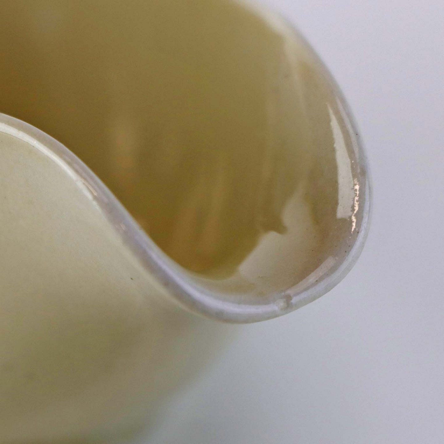 Fremstår med nister i glasuren samt støbningsfejl ved næbbet.