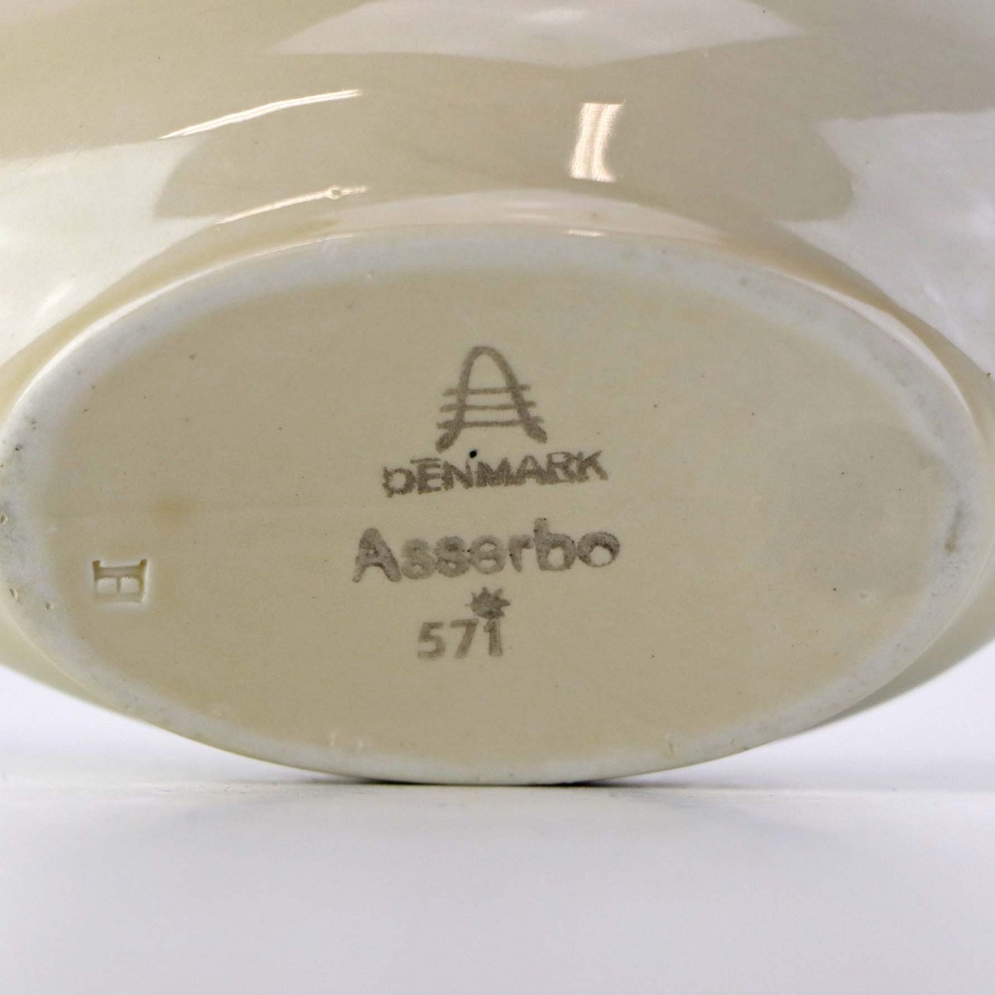 Sovsenæb i fajance fra stellet Asserbo fremstillet i perioden 1933-1965