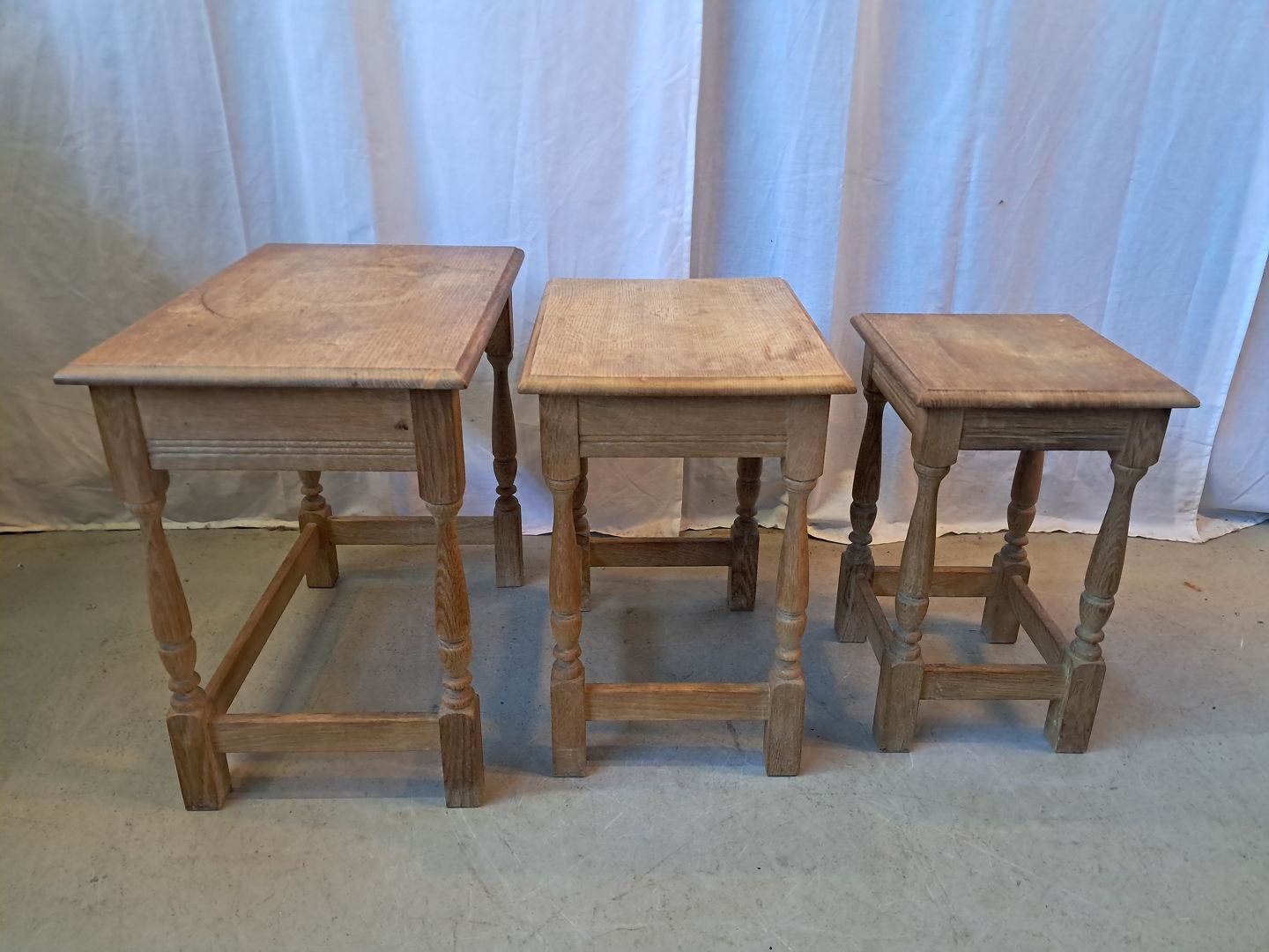 3 Indskudsborde i massivt egetræ, fra 1980erne.
