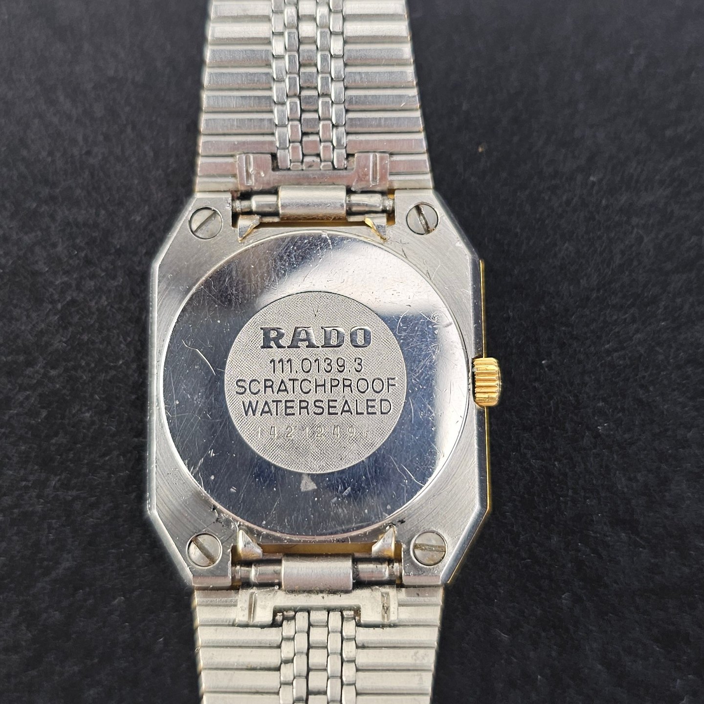 Armbåndsur i guldbelagt rustfrit stål. Mekanisk renset med nyt batteri, ikke vandtæt