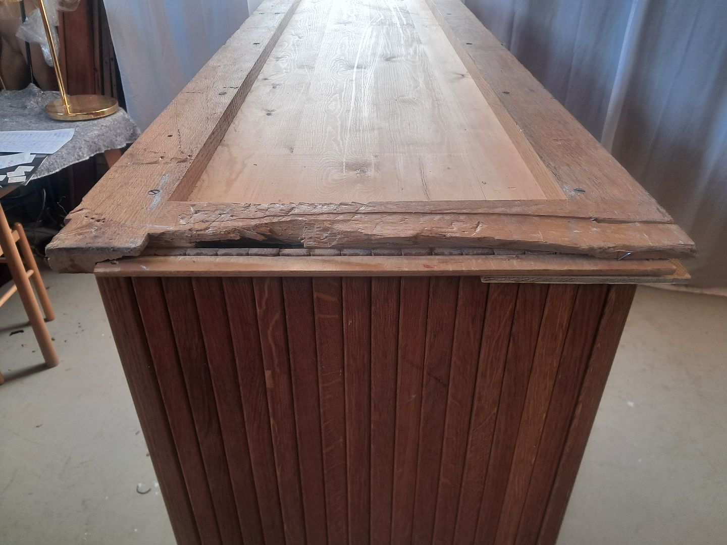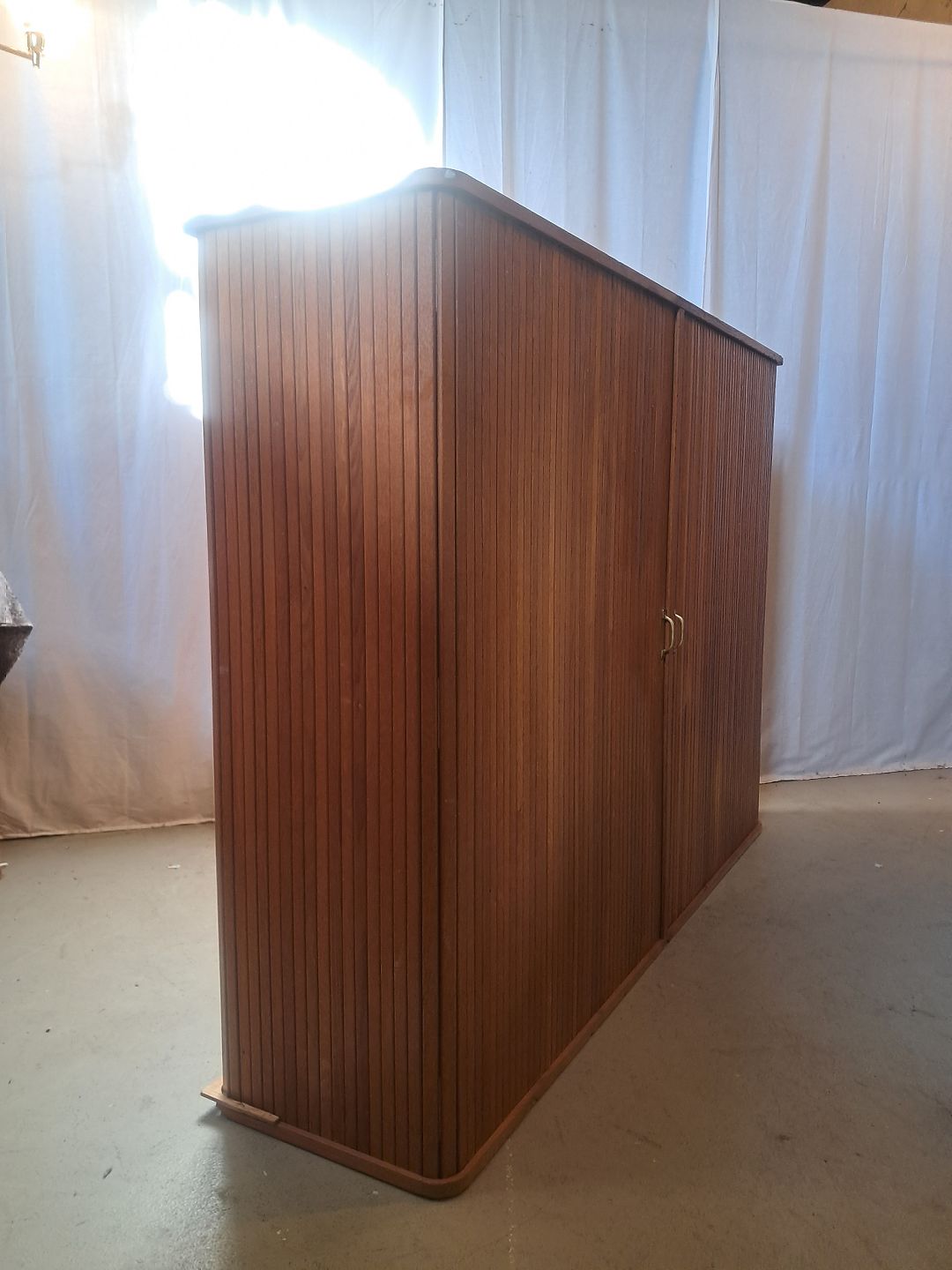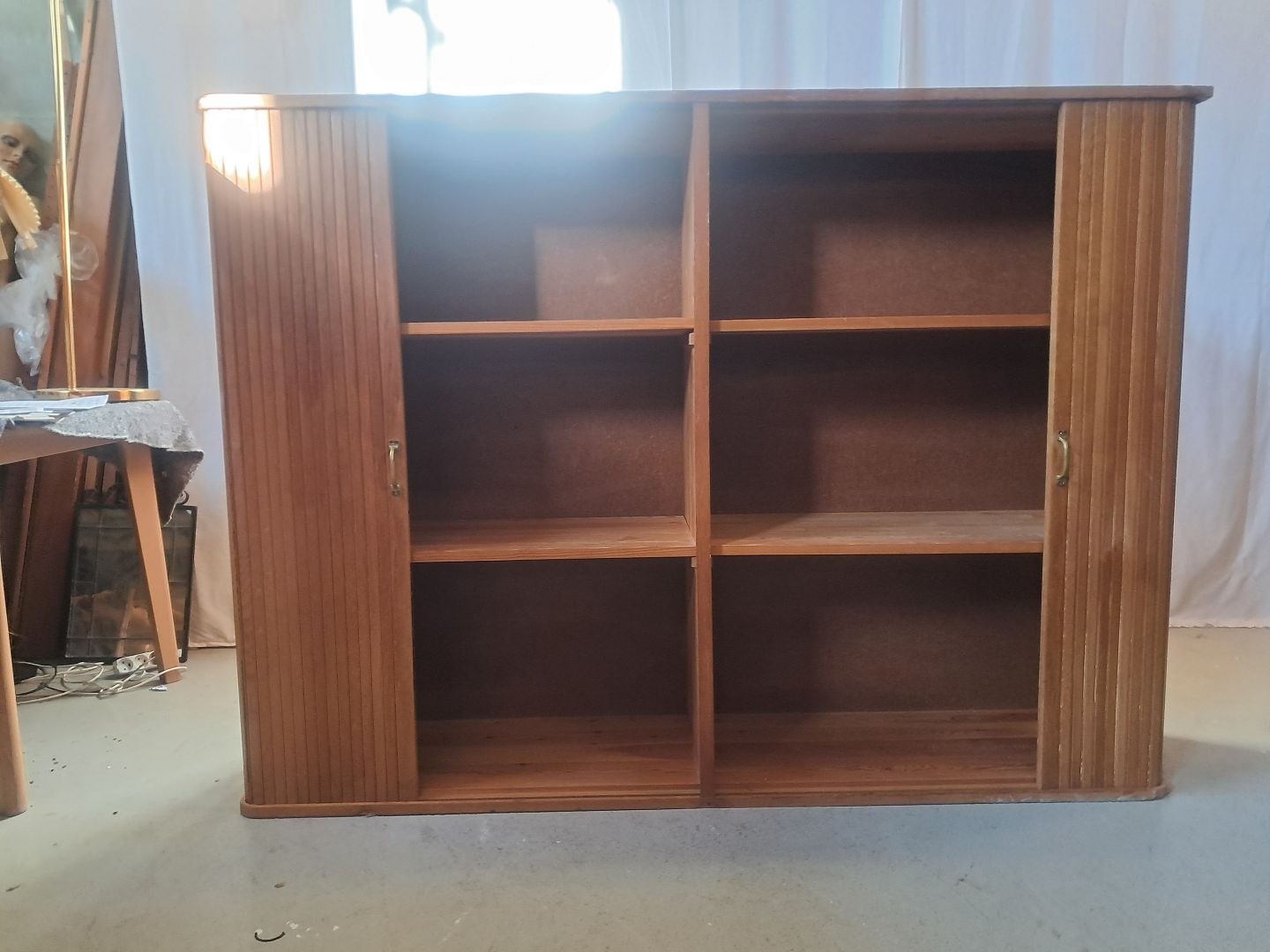 Jalousiskab i fineret egetræ, fra 1950erne.