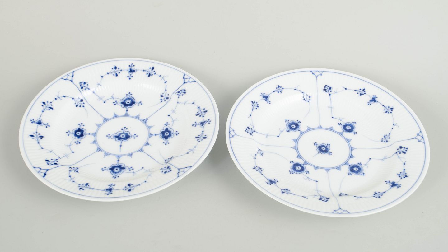 Royal Copenhagen Musselmalet Riflet, sæt af to middagstallerkener.