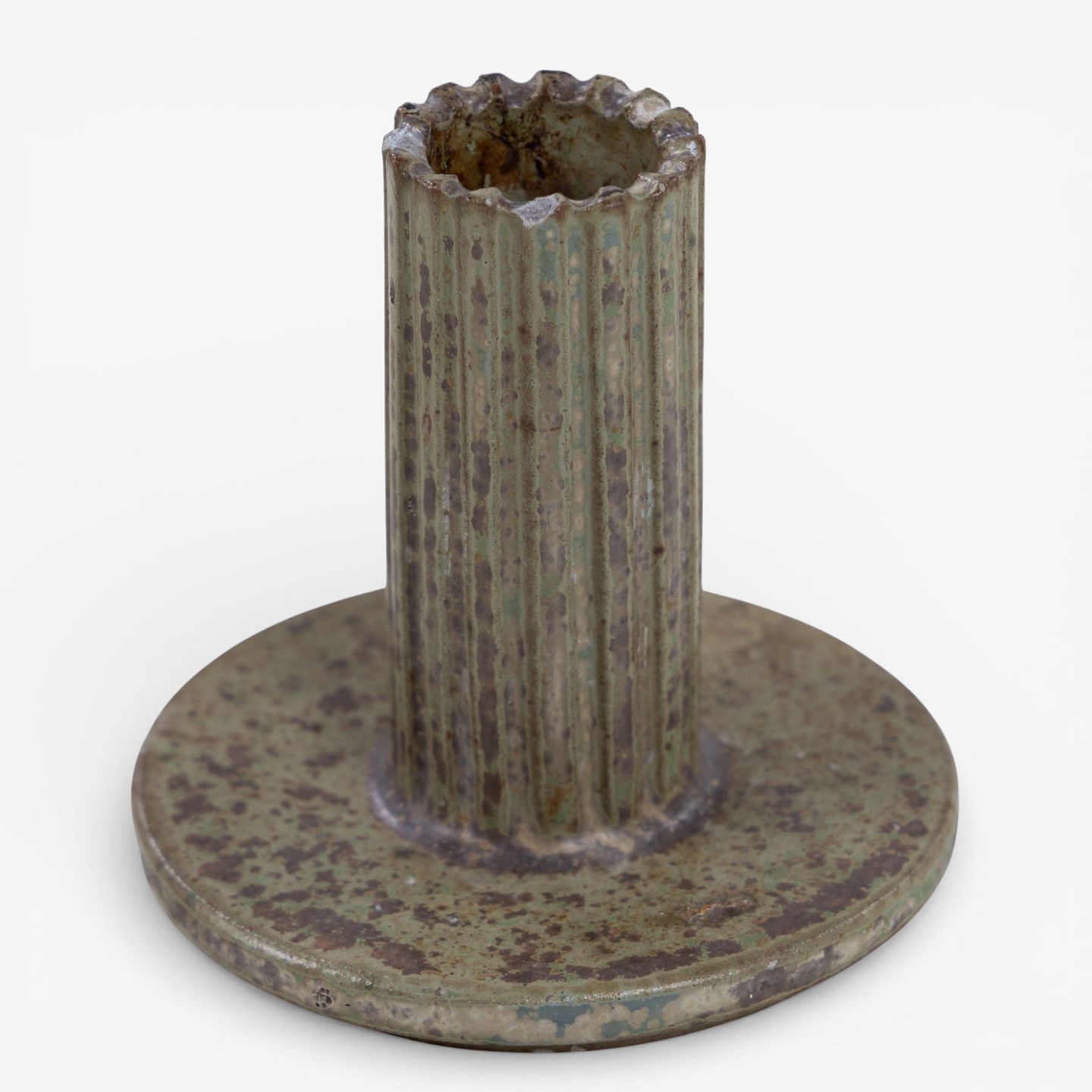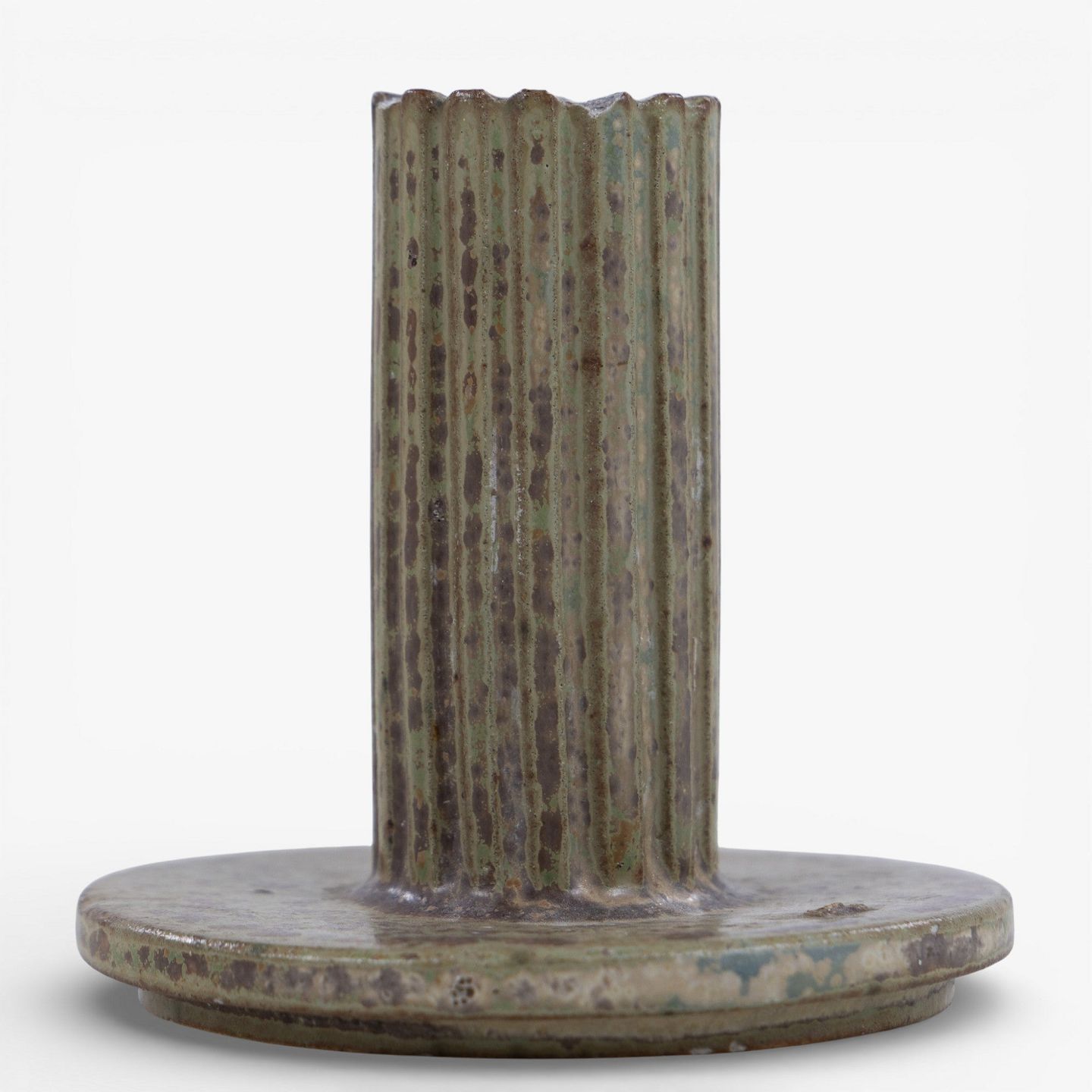 Model AB 133 - Lysestage i riflet stentøj med grøn/brun glasur. Signeret.