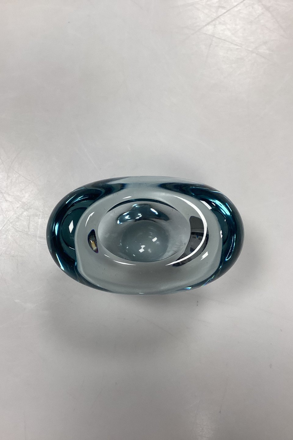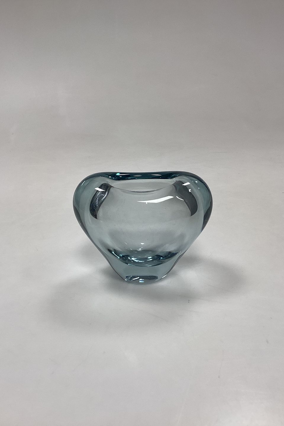Holmegaard Menuet Glasvase. Farve: Akva. Form: Hjerte. Designet af Per Lütken. I produktion mellem 1955-85. Signeret PL 1961.