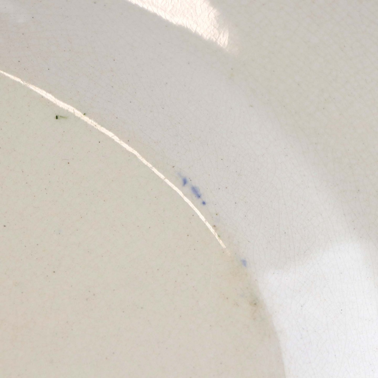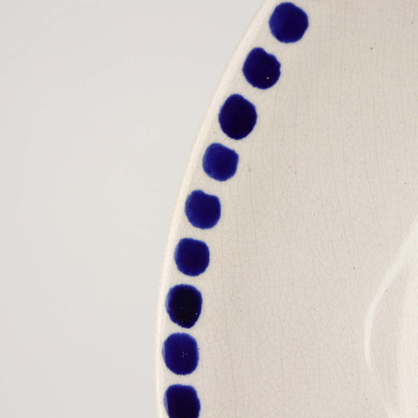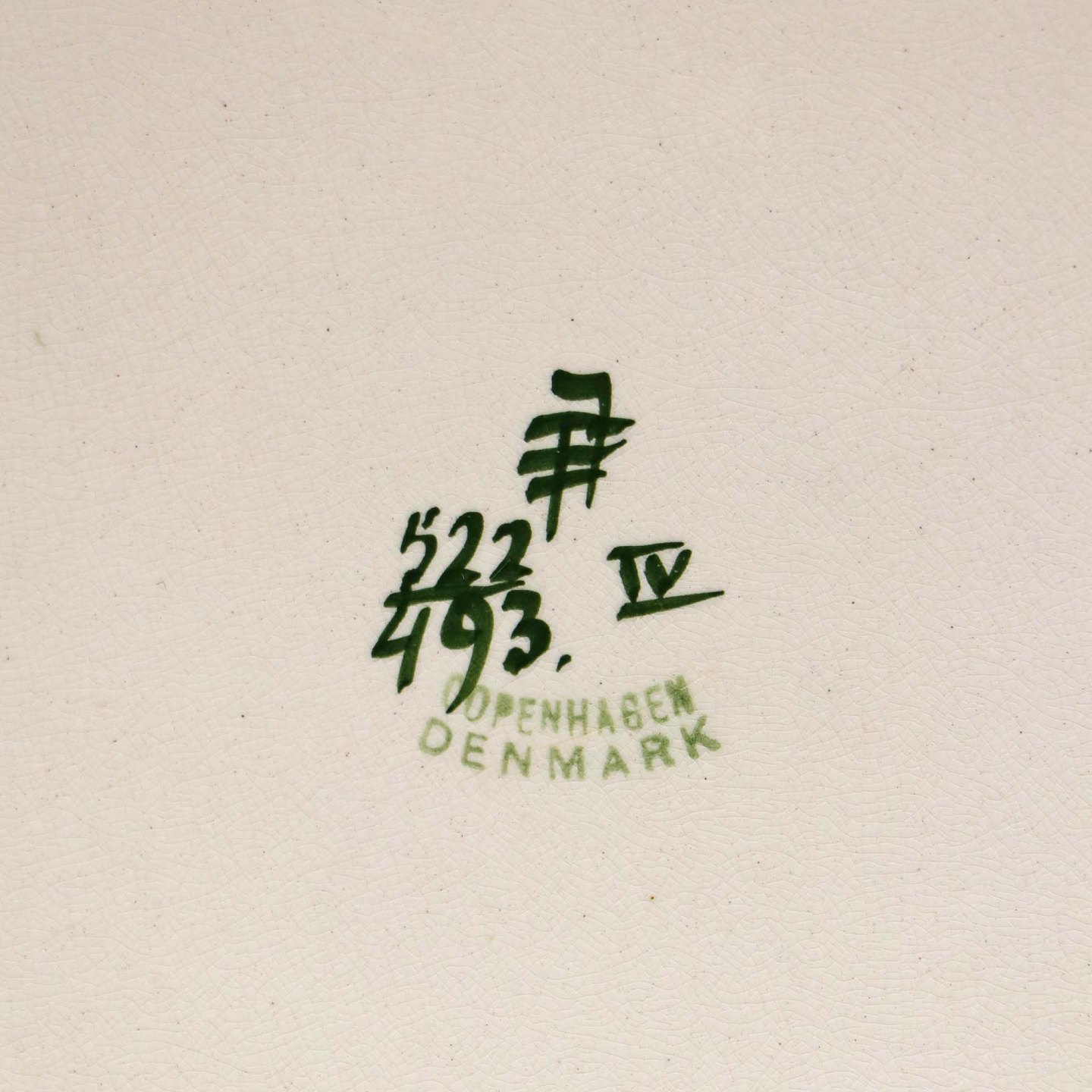 Fremstår med krakkeleringer i glasuren, brugsspor på dekorationen samt på bagsiden af fadet.