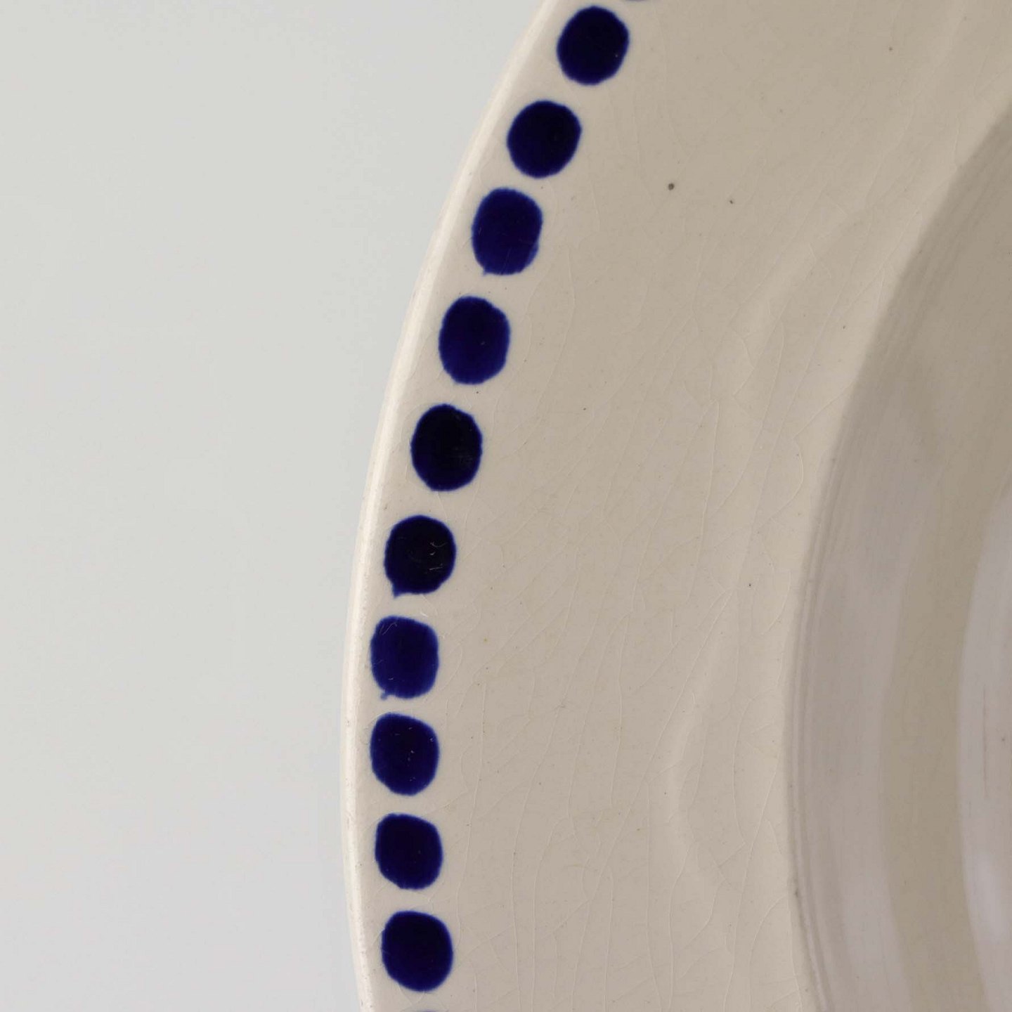 Fremstår med krakkeleringer i glasuren, nister og ujævnheder i dekorationen.