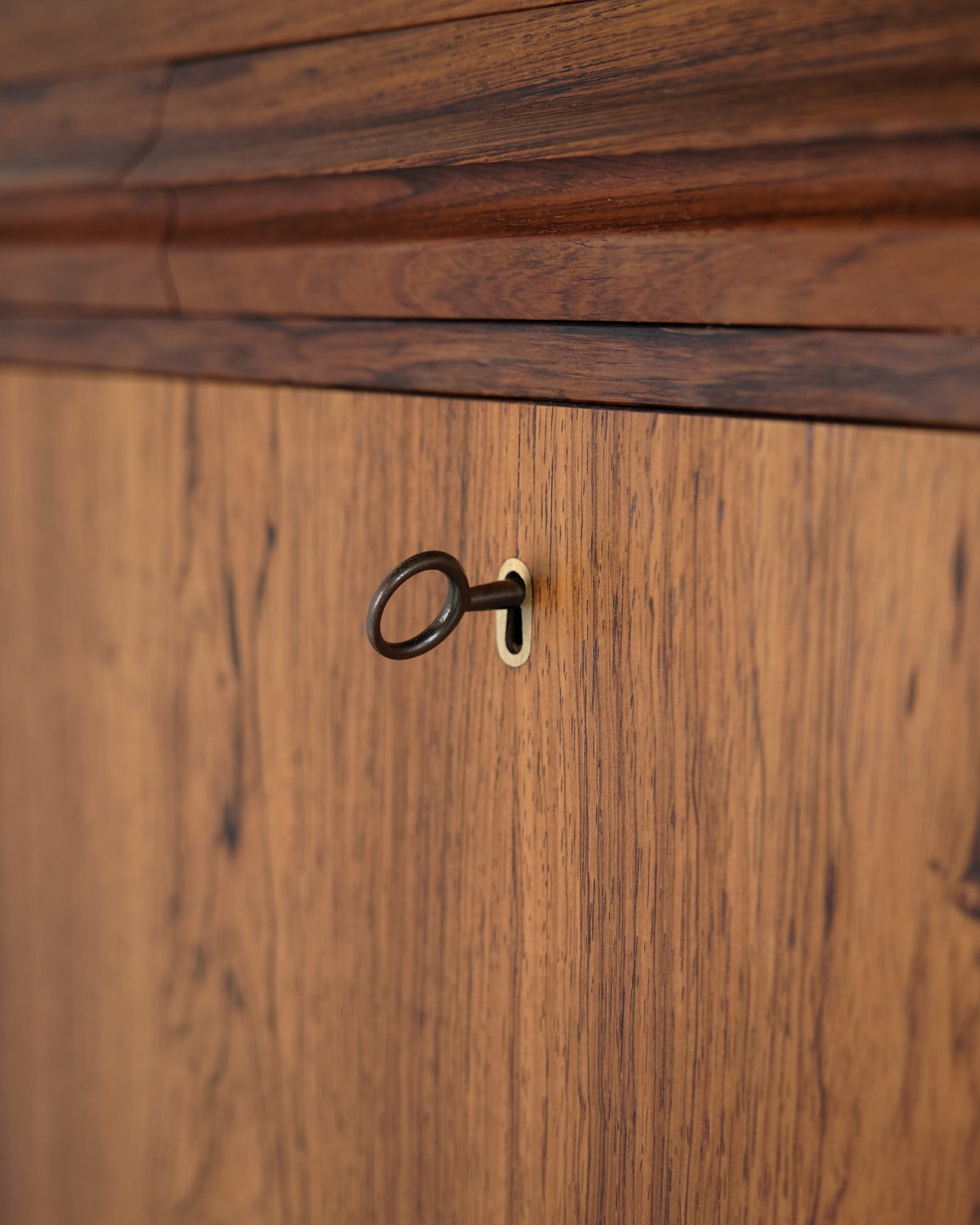 Sekretær i palisander designet af Erling Torvits fra 1960’erne. Klassisk dansk møbel med skriveklap og opbevaring. Tidløst design.