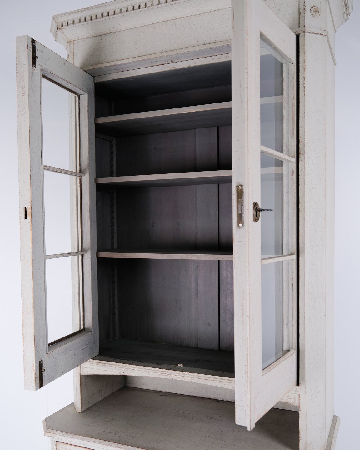 Gustaviansk Vitrineskab i Lysegrå med Patina fra År 1790
