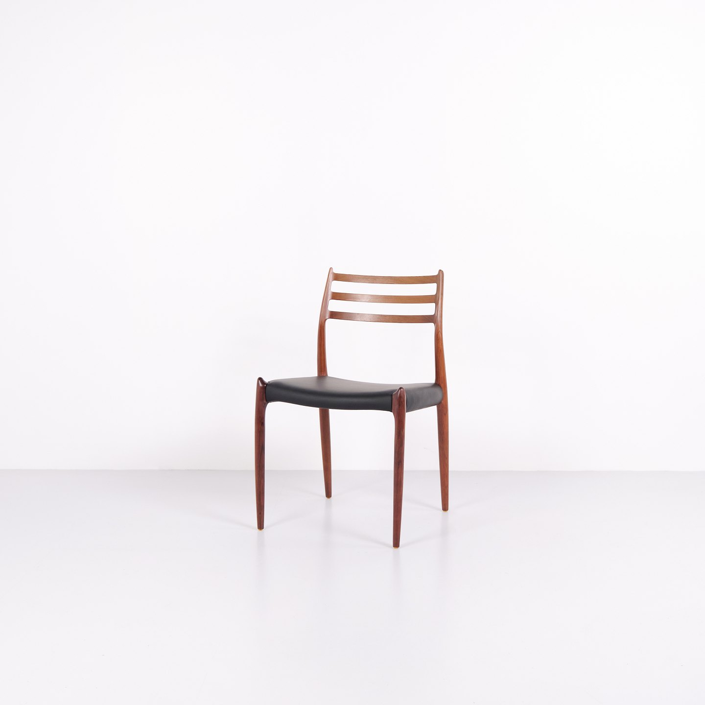 Sæt af fire N.O. Møller spisebordsstole model 78 i palisander fra 1950’erne. Klassisk dansk design med elegant snedkerarbejde.