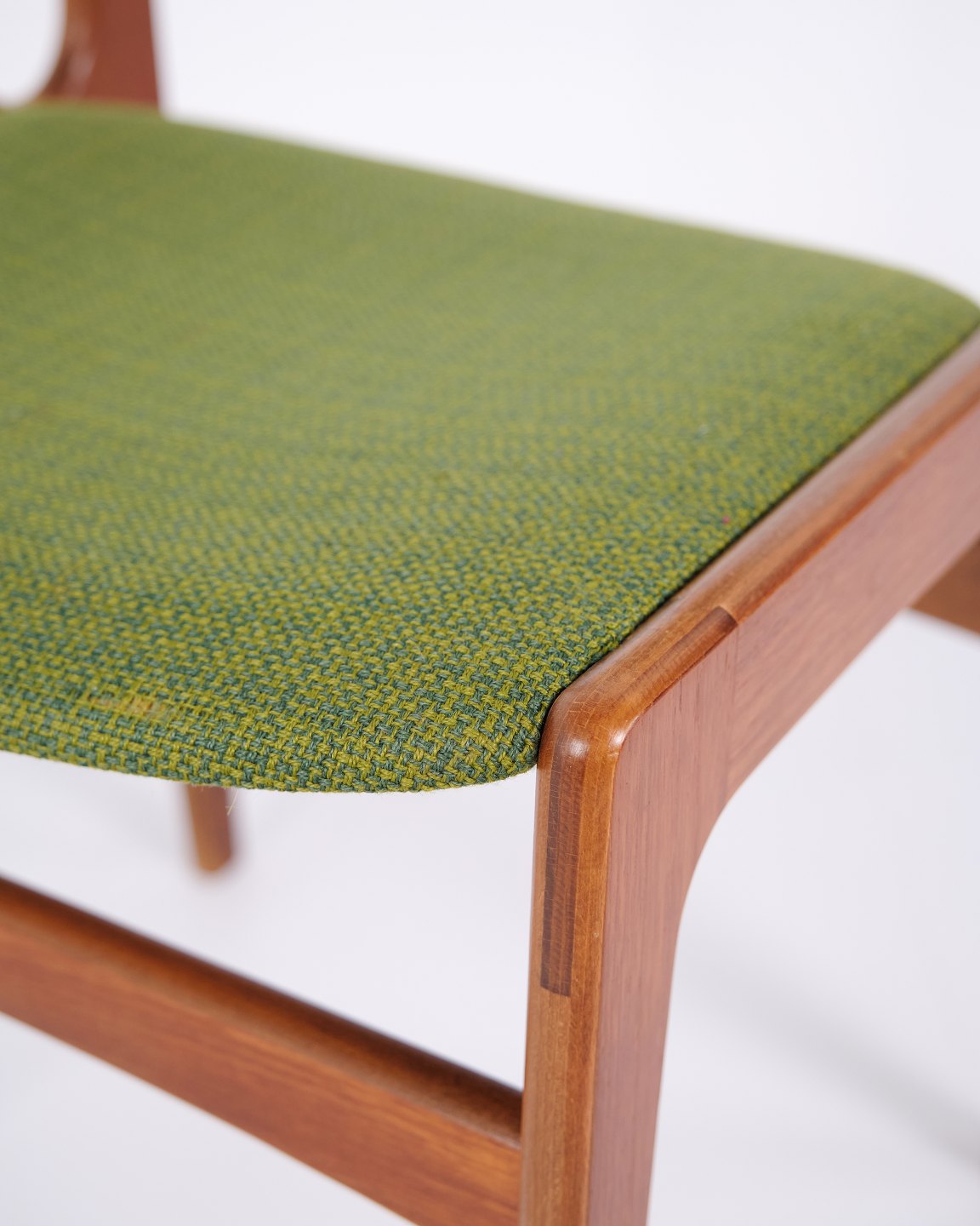 Erik Buch spisebordsstol fra 1960’erne i teak og grønt stof. Klassisk dansk design.