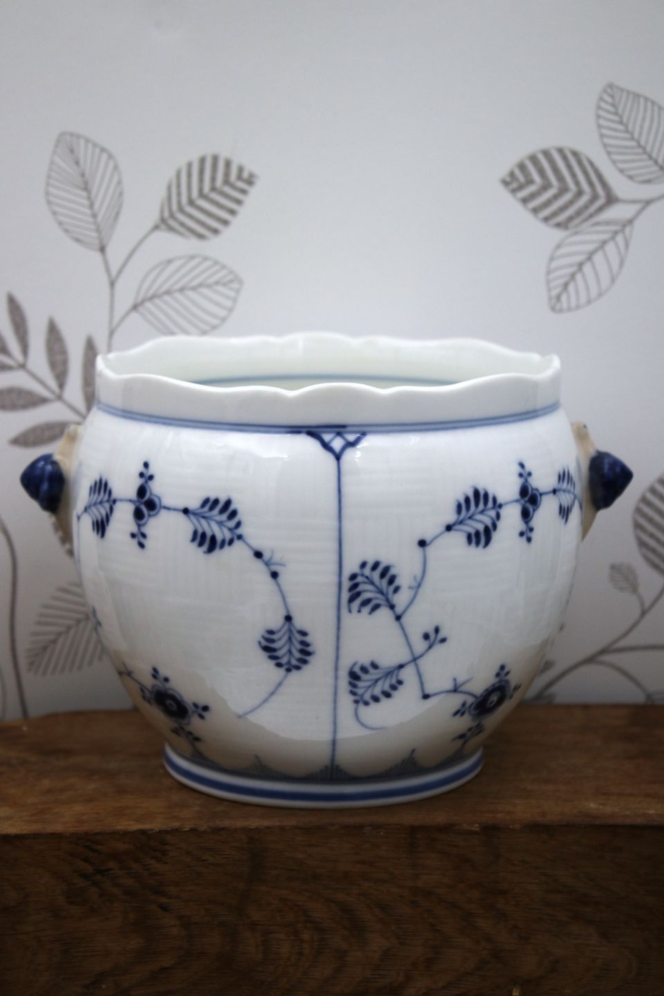Sjælden Musselmalet Riflet blomsterpotteskjuler fra Royal Copenhagen.