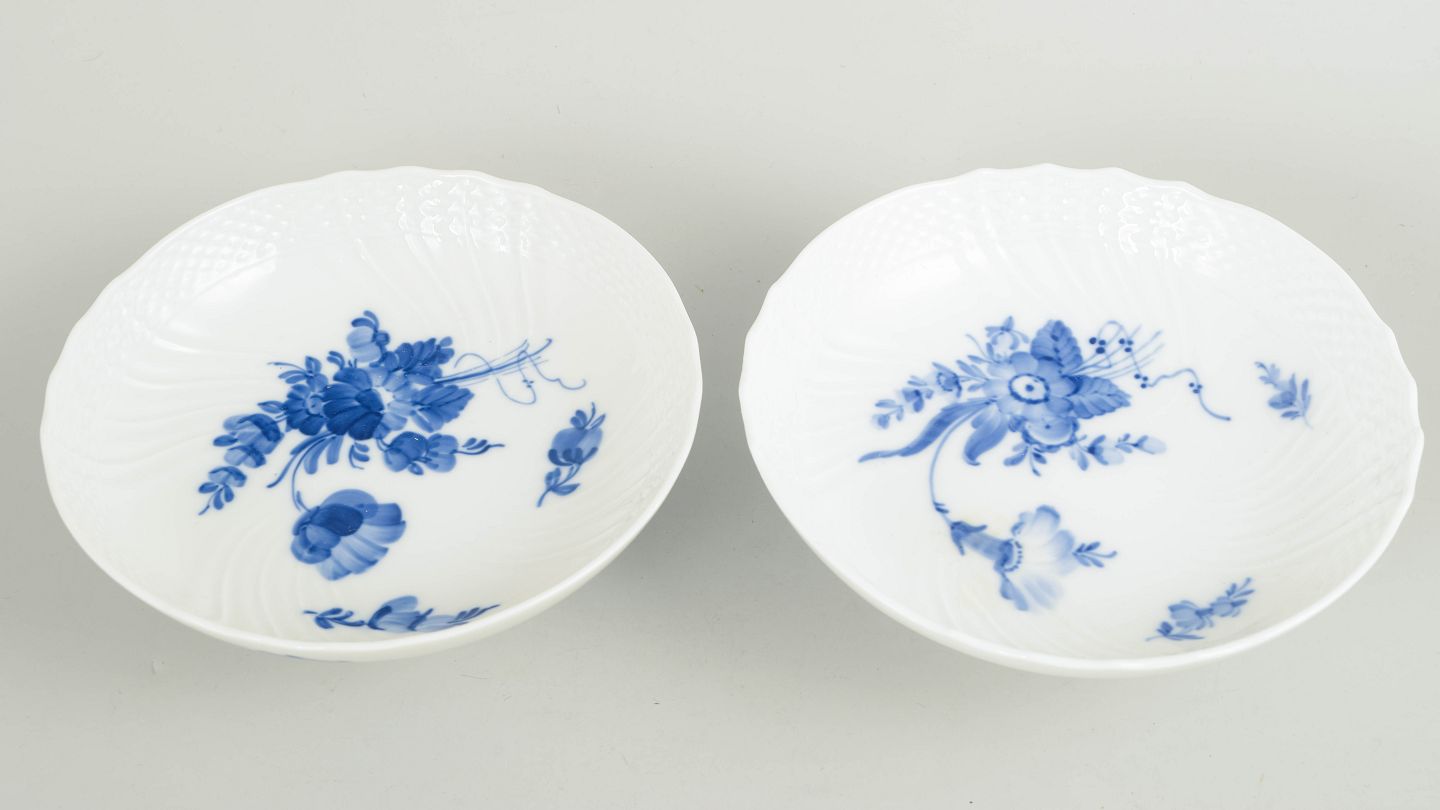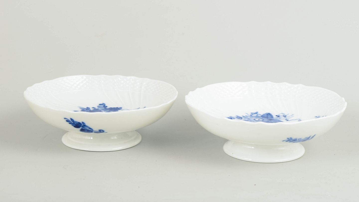 Royal Copenhagen Blå Blomst Svejfet, sæt af to små opsatsskåle.