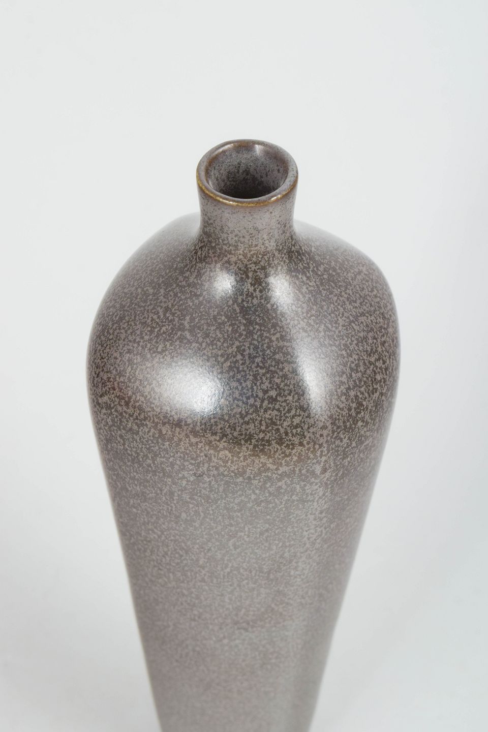 Stor drejet stentøjsvase med slank balusterform og smal hals. Udført i gråbrun harpelsglasur fra Selecta-serien. Stemplet Gustavsberg og Selecta i bunden.