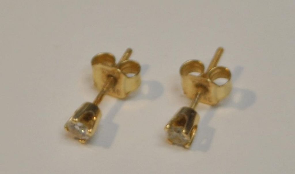 Par 14 K øresticks med små brillanter. 20. årh. Stemplet. Brillanter 1/16 carat.