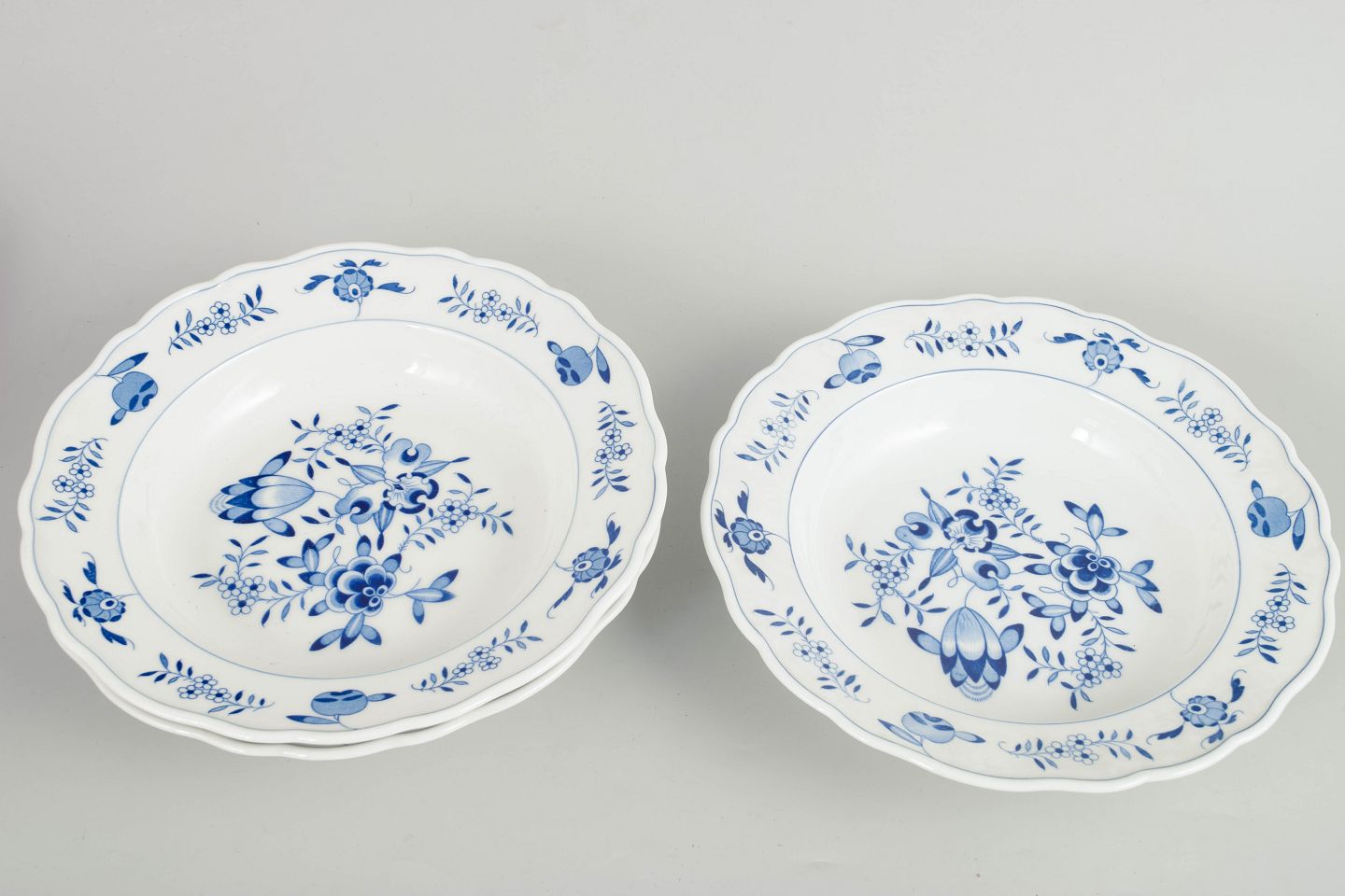 Meissen Blå Orkidé, sæt af tre dybe tallerkener.