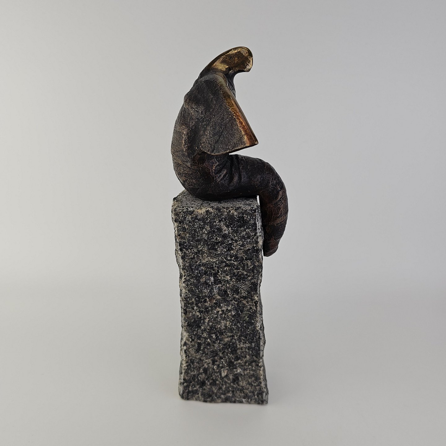 Figur af bronze på en granitsten