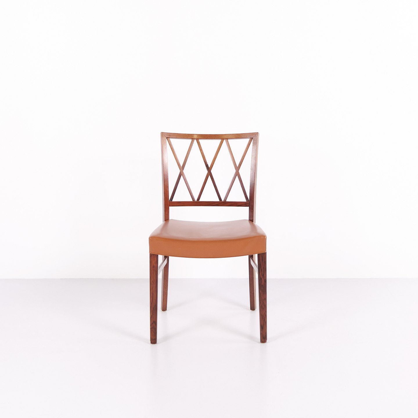 Sæt af otte spisebordsstole i palisander designet af Ole Wanscher for Slagelse Møbelværk. Dansk design fra 1950’erne med klassisk og elegant formsprog.