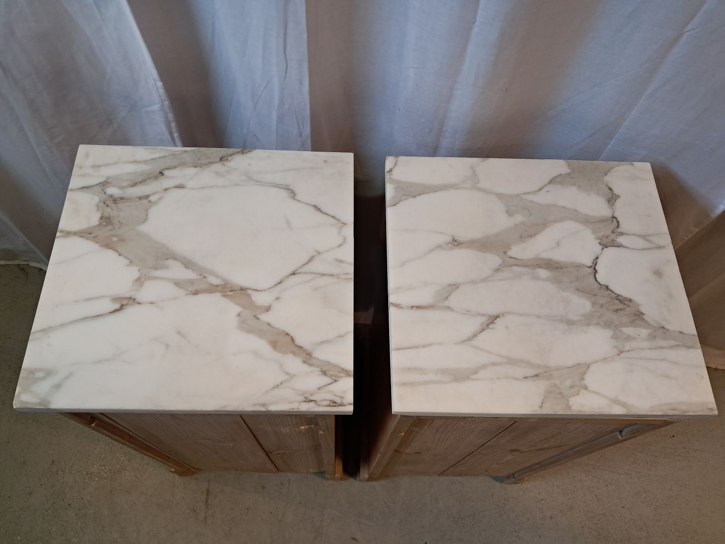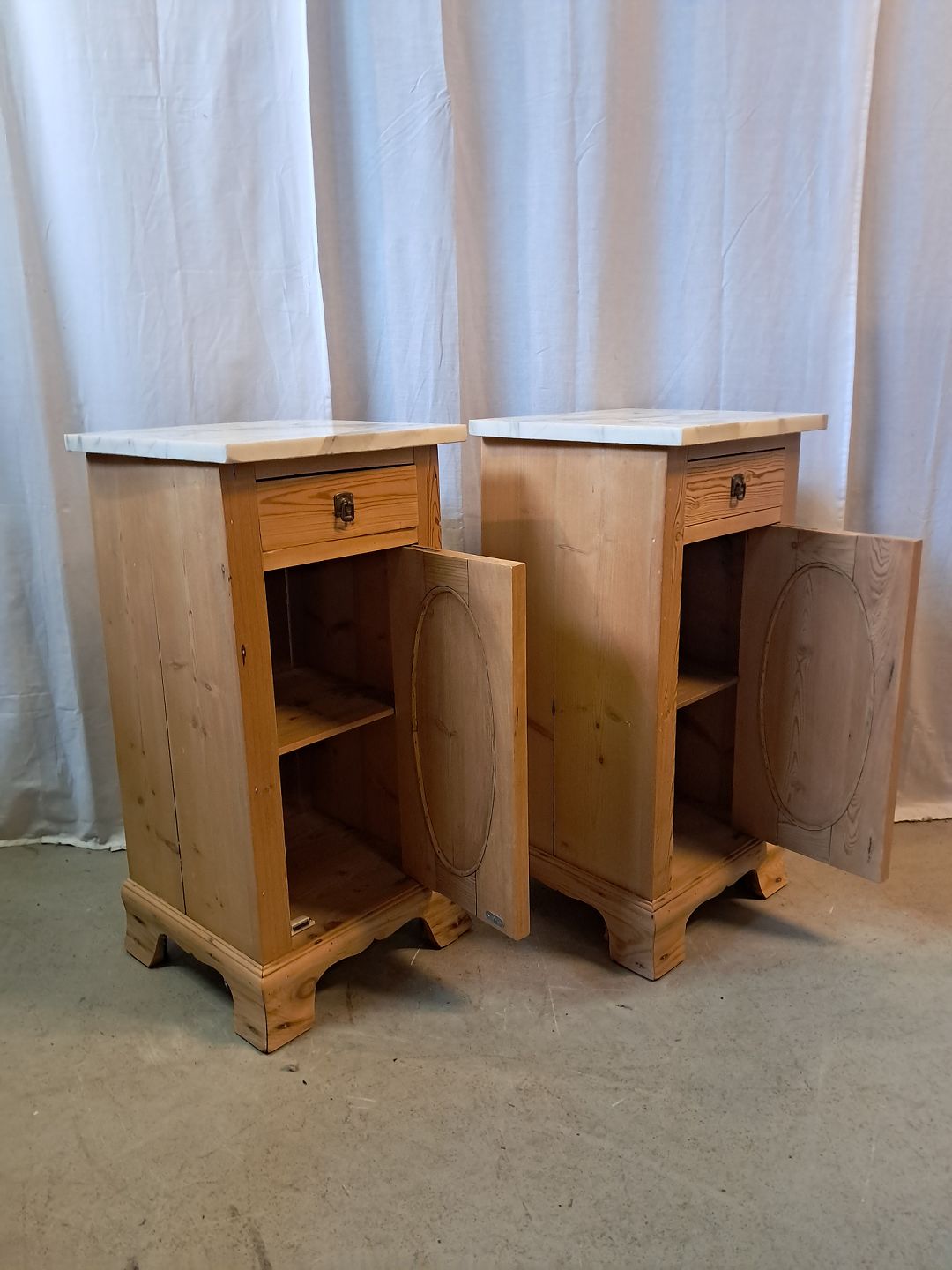2 Natskabe i massivt fyrretræ med marmorplade, fra 1910erne.