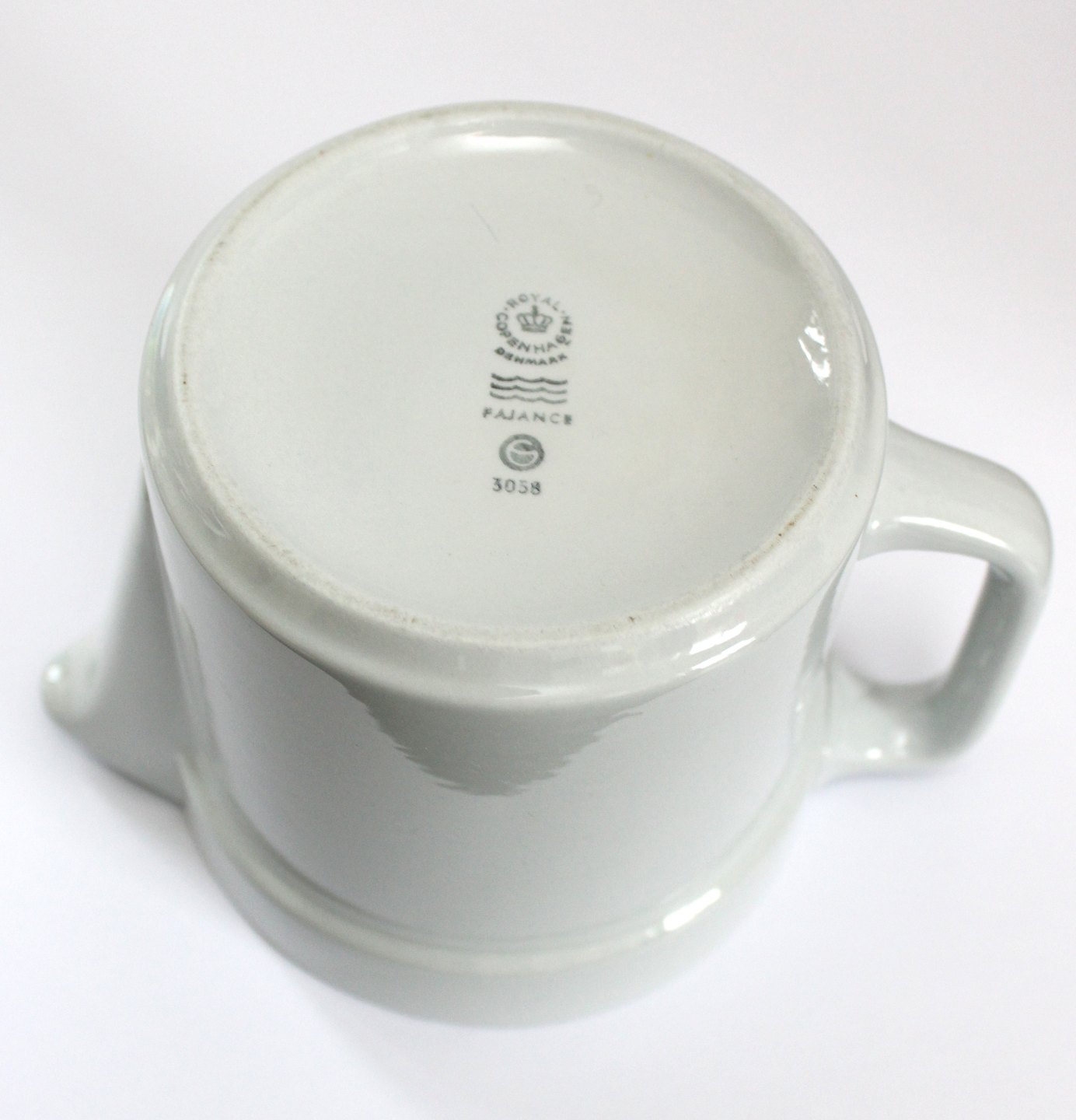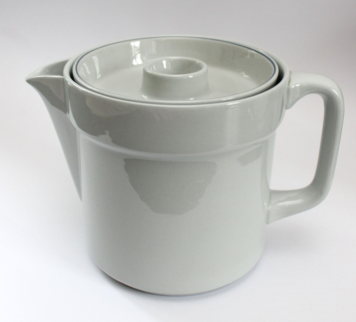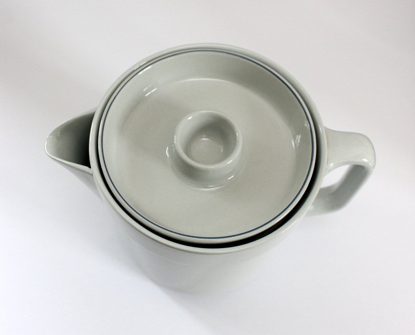 Royal Copenhagen fajance, Blåkant, lille tekande. Designet af Grethe Meyer i 1965, tidligere produceret under Aluminia. Nr. 3058. Højde 12 cm. Diameter 12 cm. Længde 17,5 cm. Fin og hel stand. Pris: 450 kr.