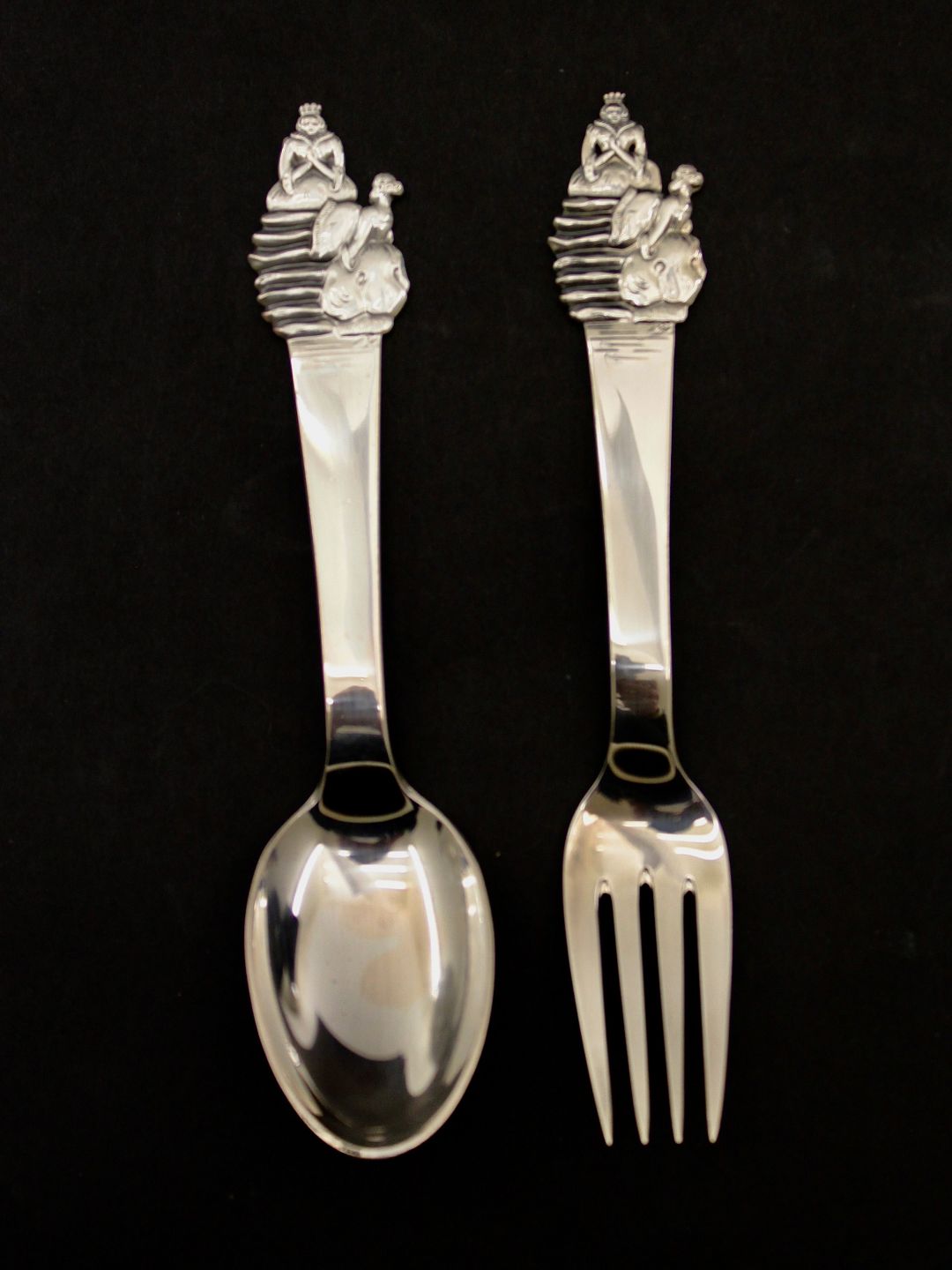 H C Andersen 830 sølv barne bestik 14,5 cm. "Prinsessen på Ærten" flot som nyt ingen graveringer. emne nr. 632957