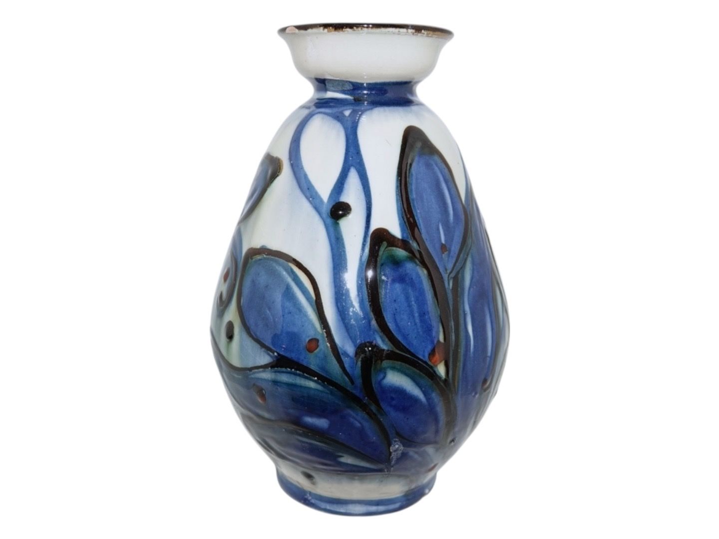 Kähler keramik, større vase med blå og hvid dekoration.