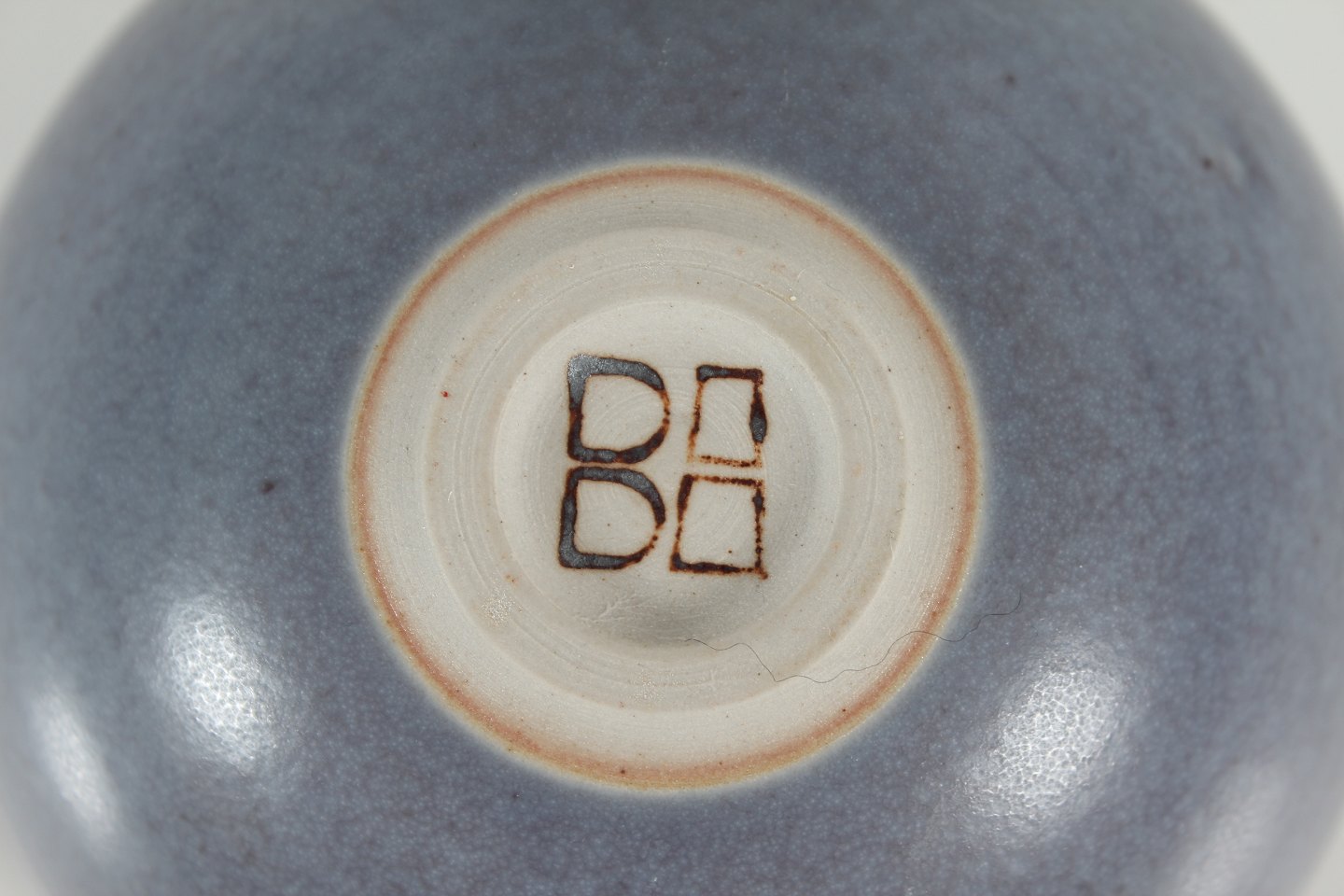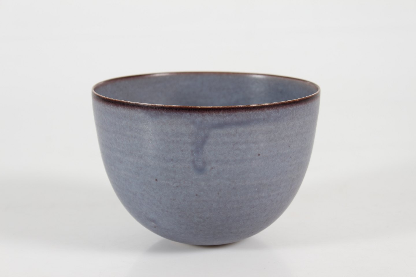 Tynd drejet skål dekoreret med grålilla glasur