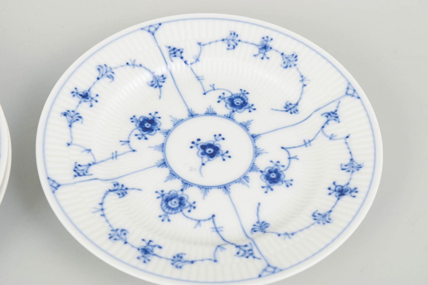 Set of three cake plates in hand-painted porcelain from Blue Fluted Plain with classic underglaze decoration in cobalt blue. Model 1/180. First factory quality. The plates measure D. 17 cm. Produced in the 1970s.