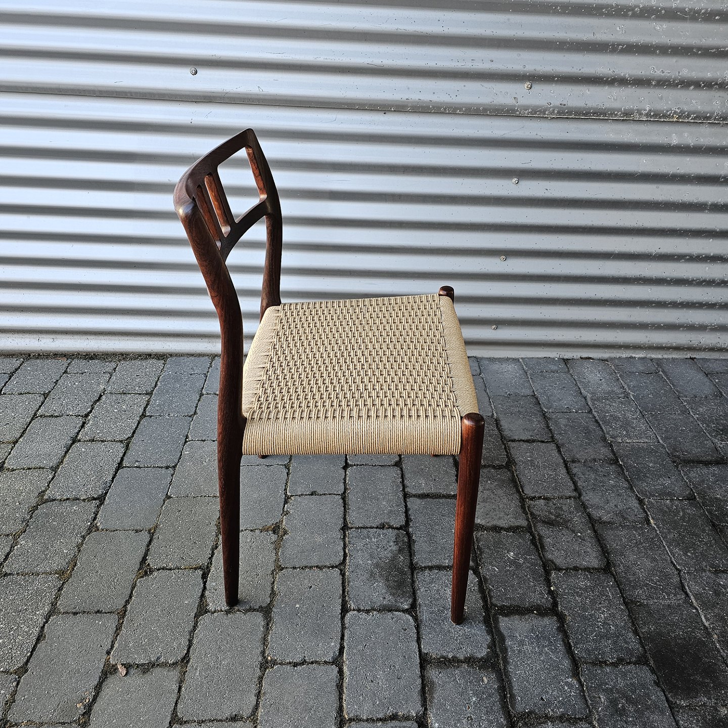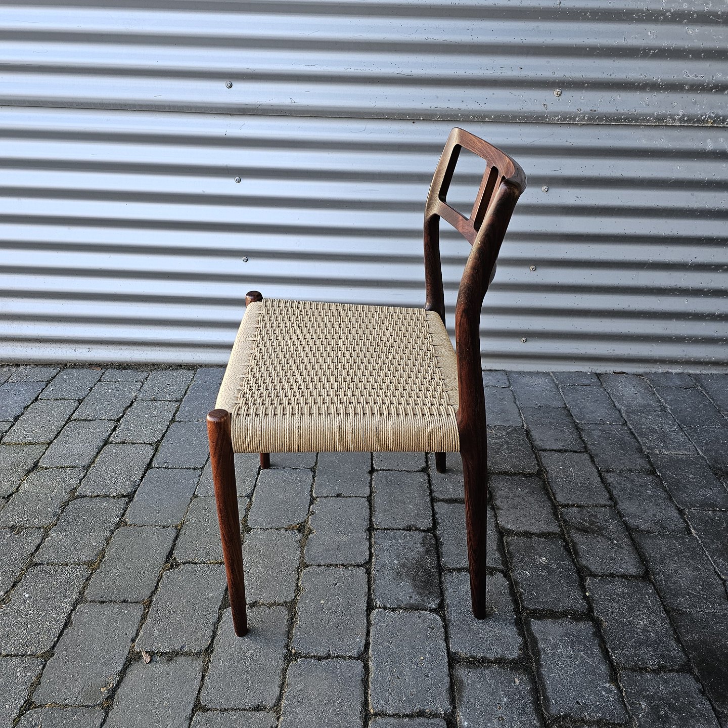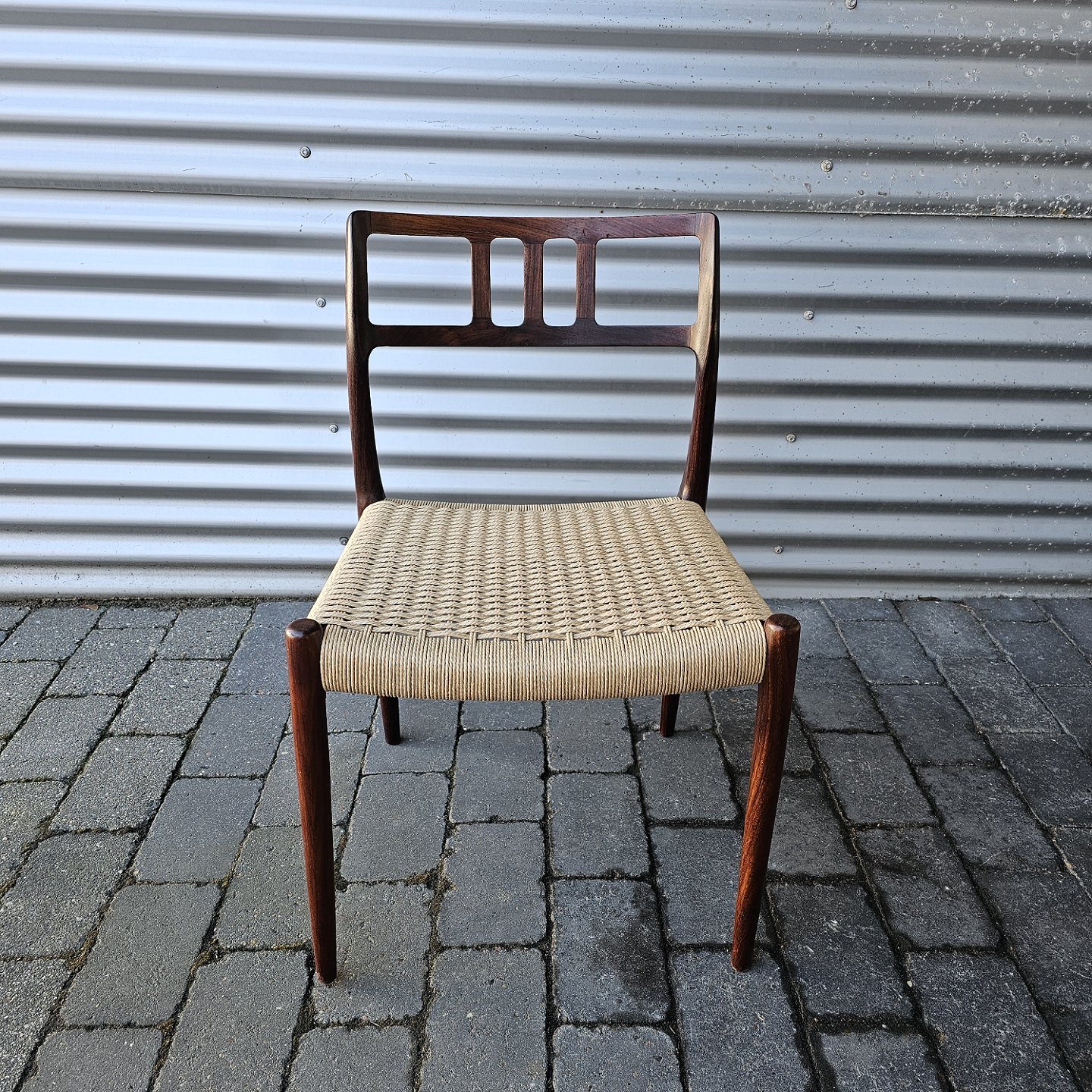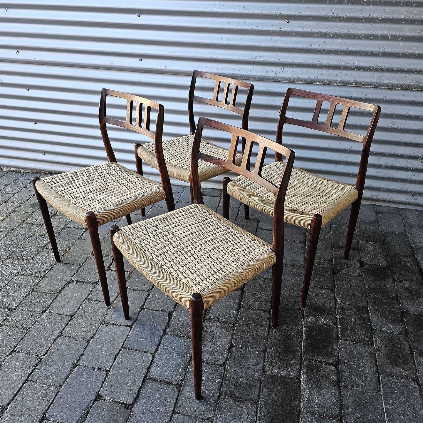 Sæt med fire styk spisebordsstole model 79 i palisander med ny flettede sæder