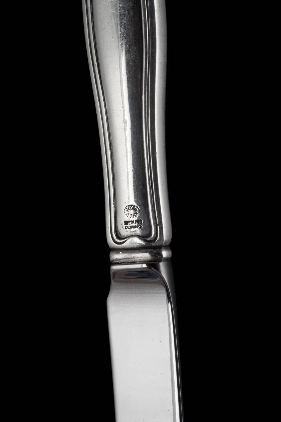 Georg Jensen, sæt af fire frugtknive, Dobbeltriflet.