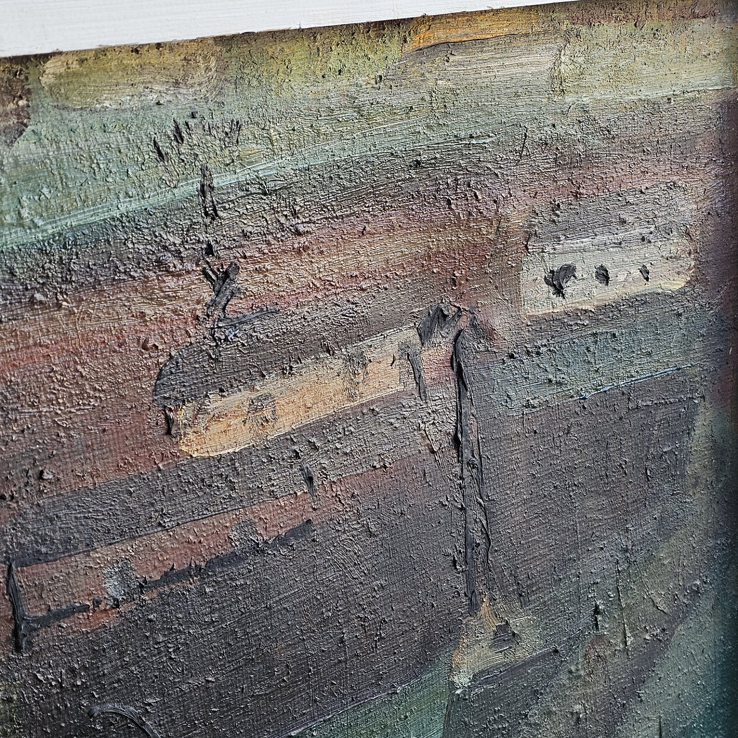 Oliemaleri på lærred med hvid ramme