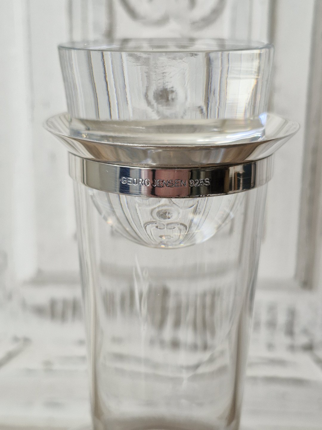 Ole Palsby for Georg Jensen karaffel i glas med krave af sterlingsølv