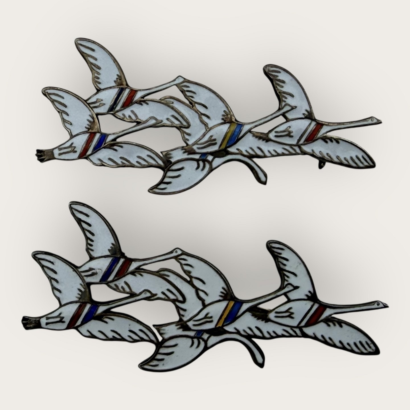 Erik Magnussen, broche i sterling sølv, De fem svaner fra Norden (Symboliserer de fem nordiske lande), Mål ca. 6x2,5cm * pæn stand*