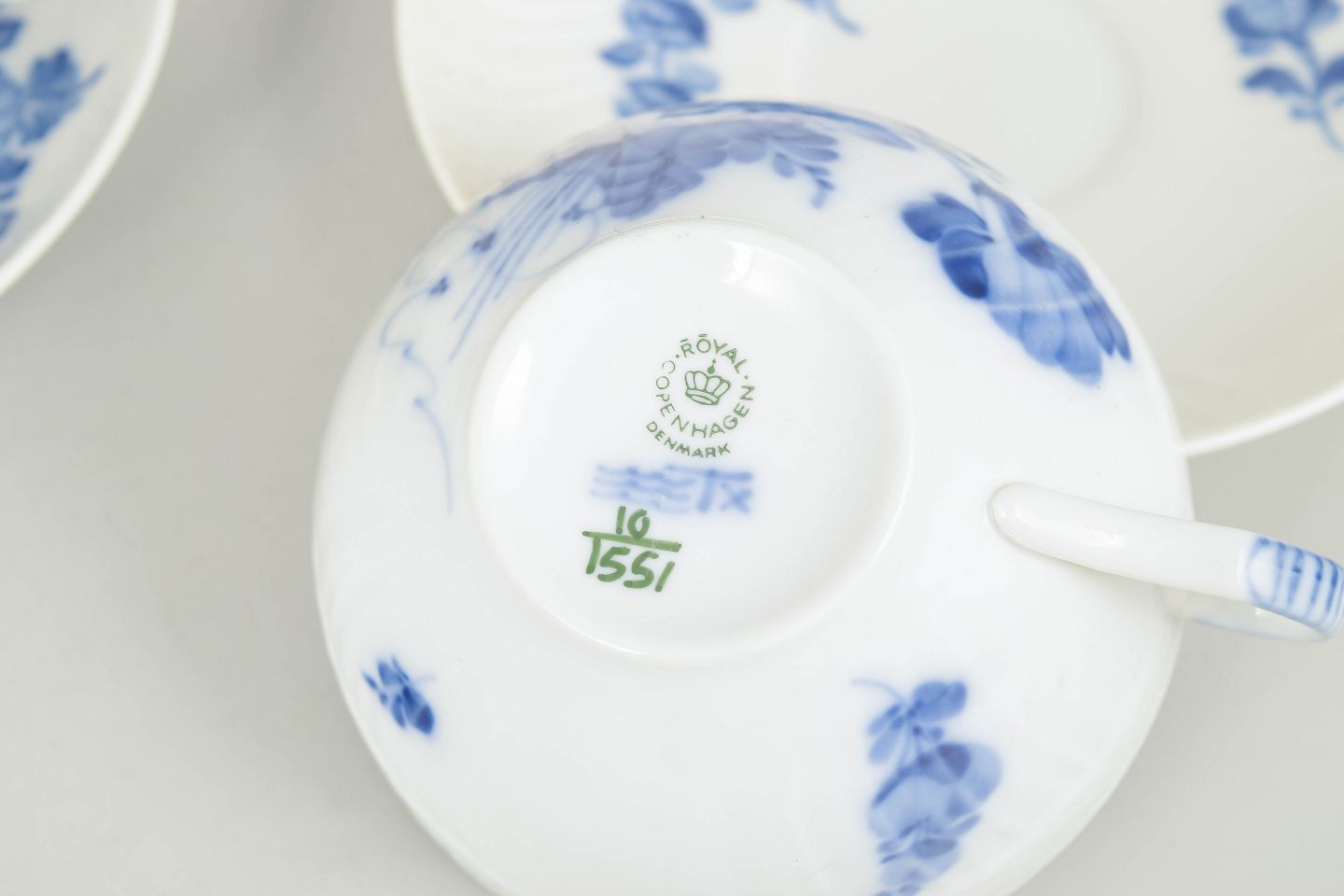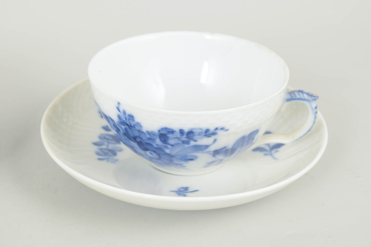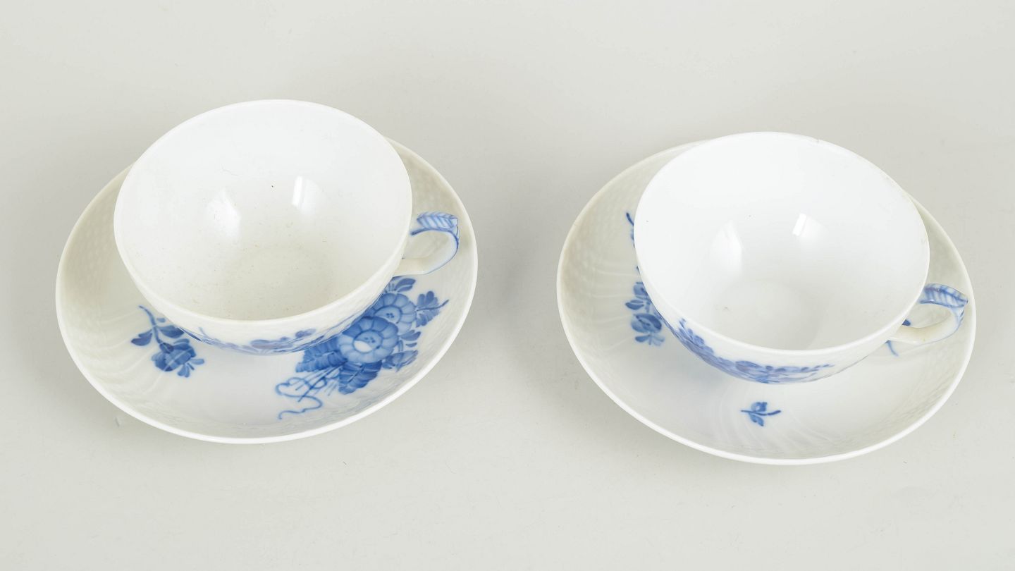 Royal Copenhagen, Blue Flower Curved set of two teacups with matching saucers.