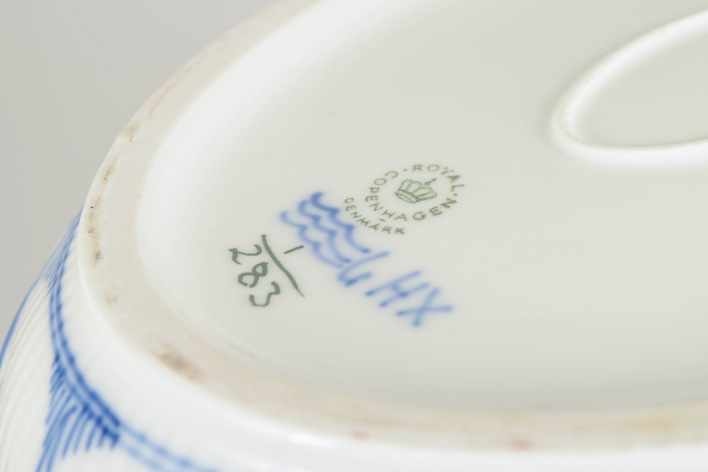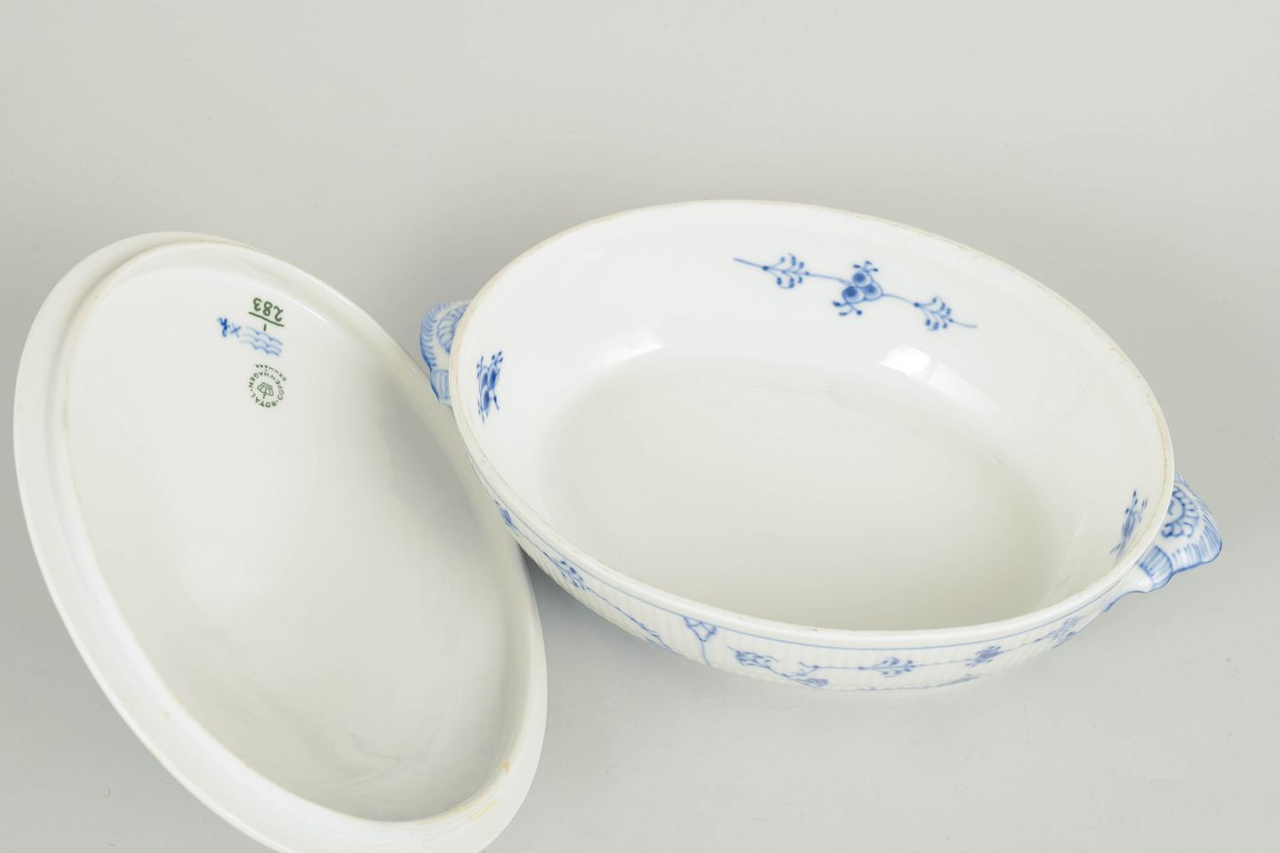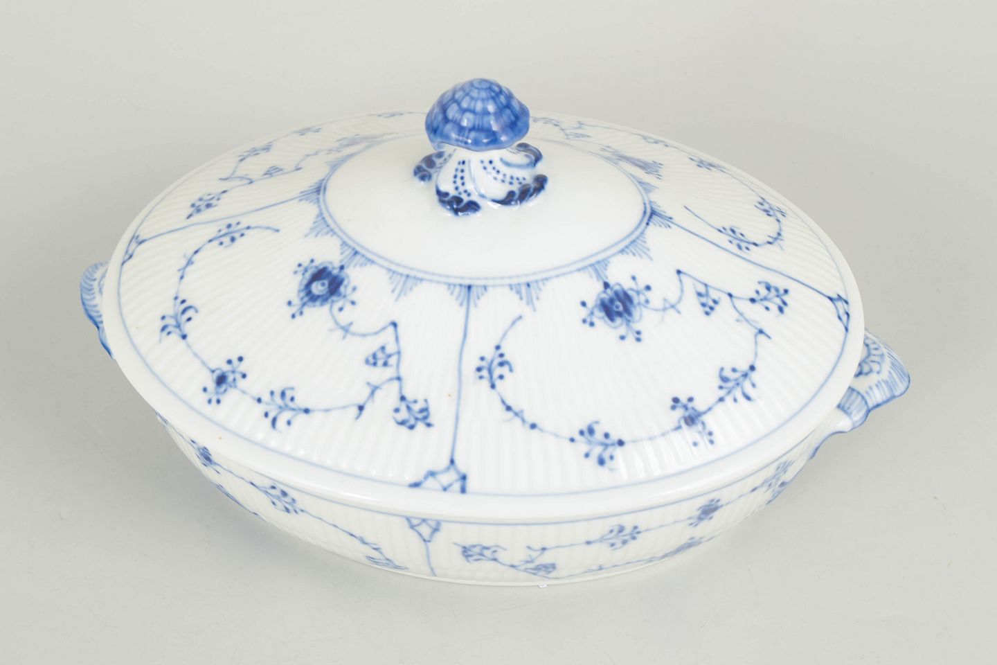 Royal Copenhagen, musselmalet riflet oval terrin med låg.