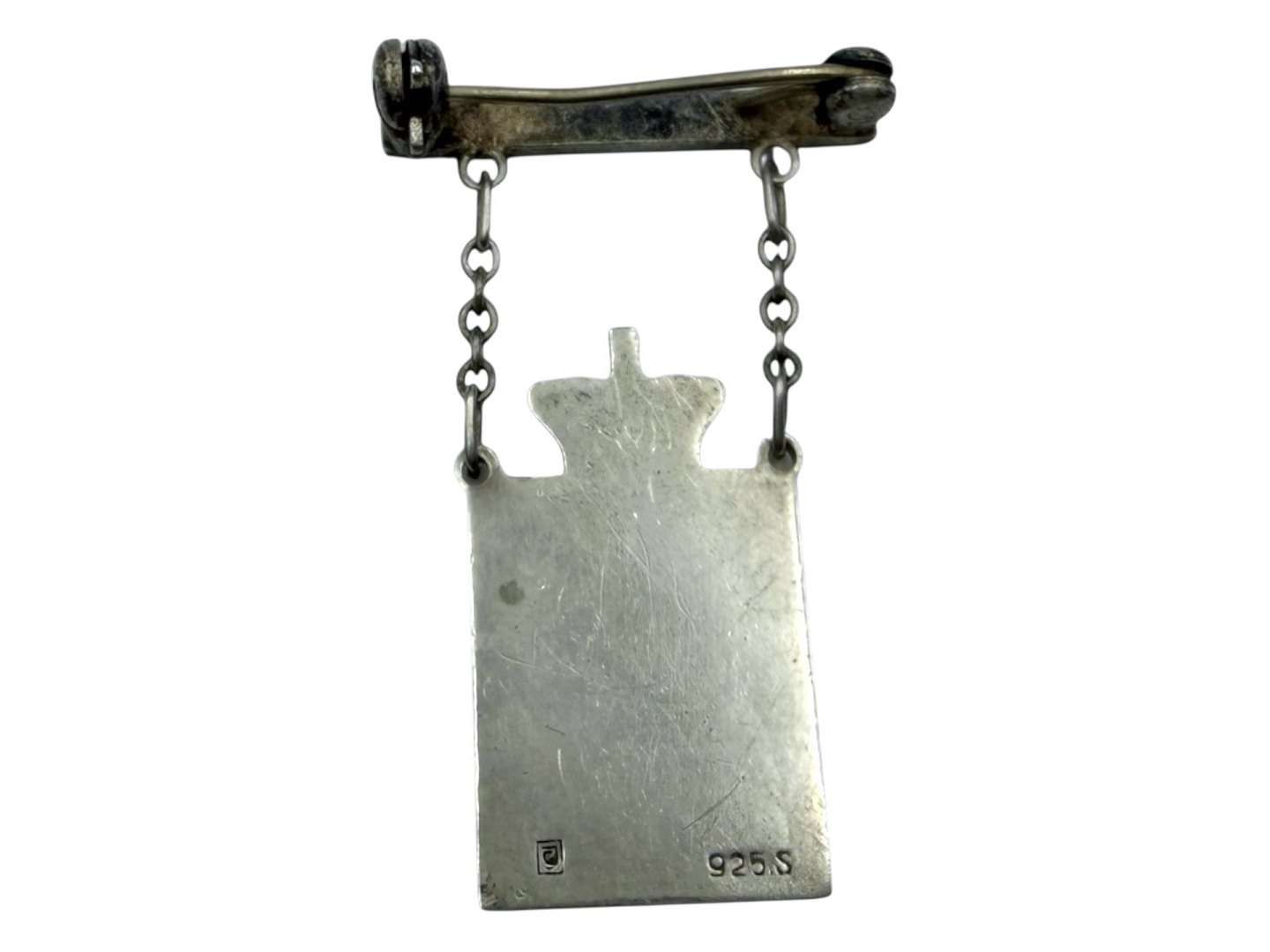 Emblemet måler 2,3 cm. - med kæde måler det 3,3 cm.