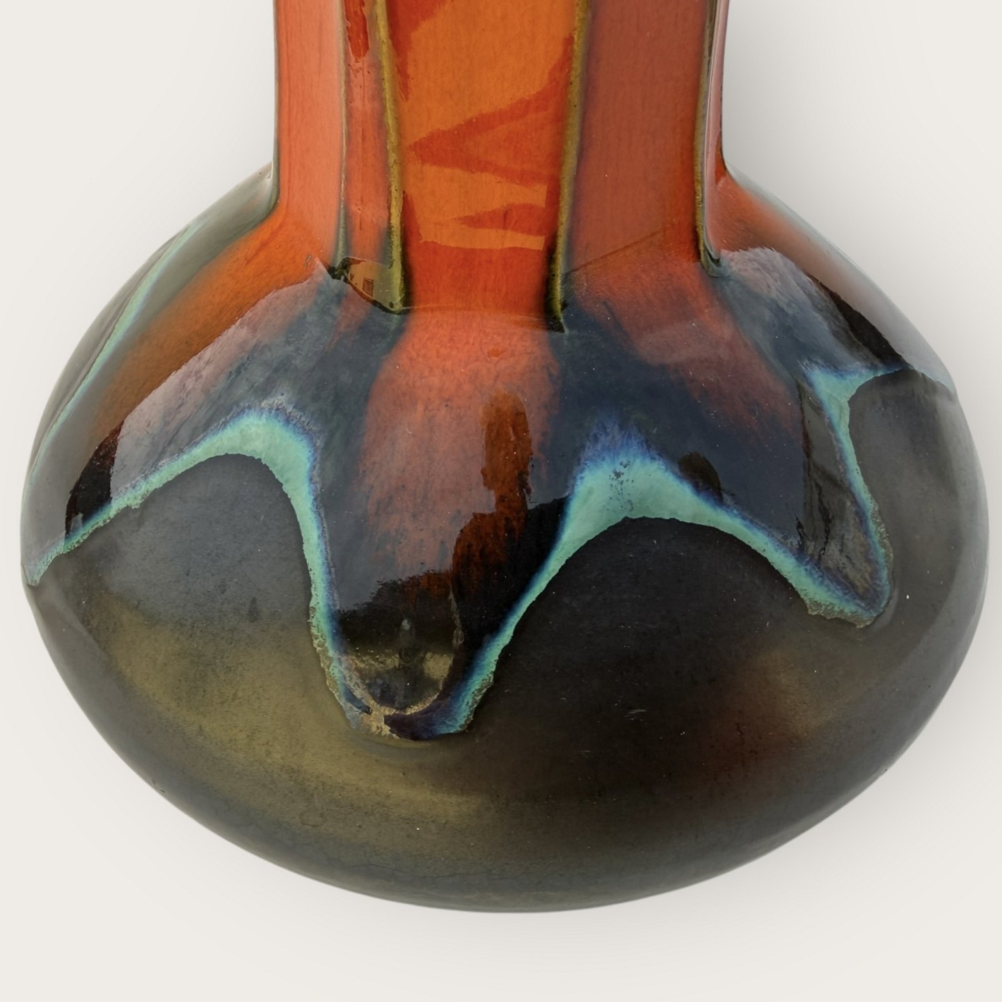 Ernst Faxe, retro bordlampe med kraftig orange glasur, ikke signeret, højde med fatning ca. 36cm *Fin stand*