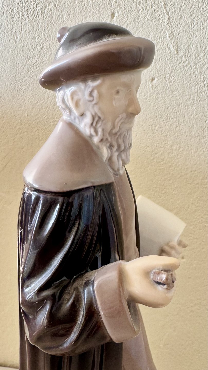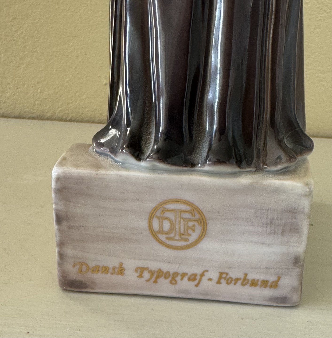 Johann Gutenberg figur i porcelæn fra Dansk Typograf-Forbund