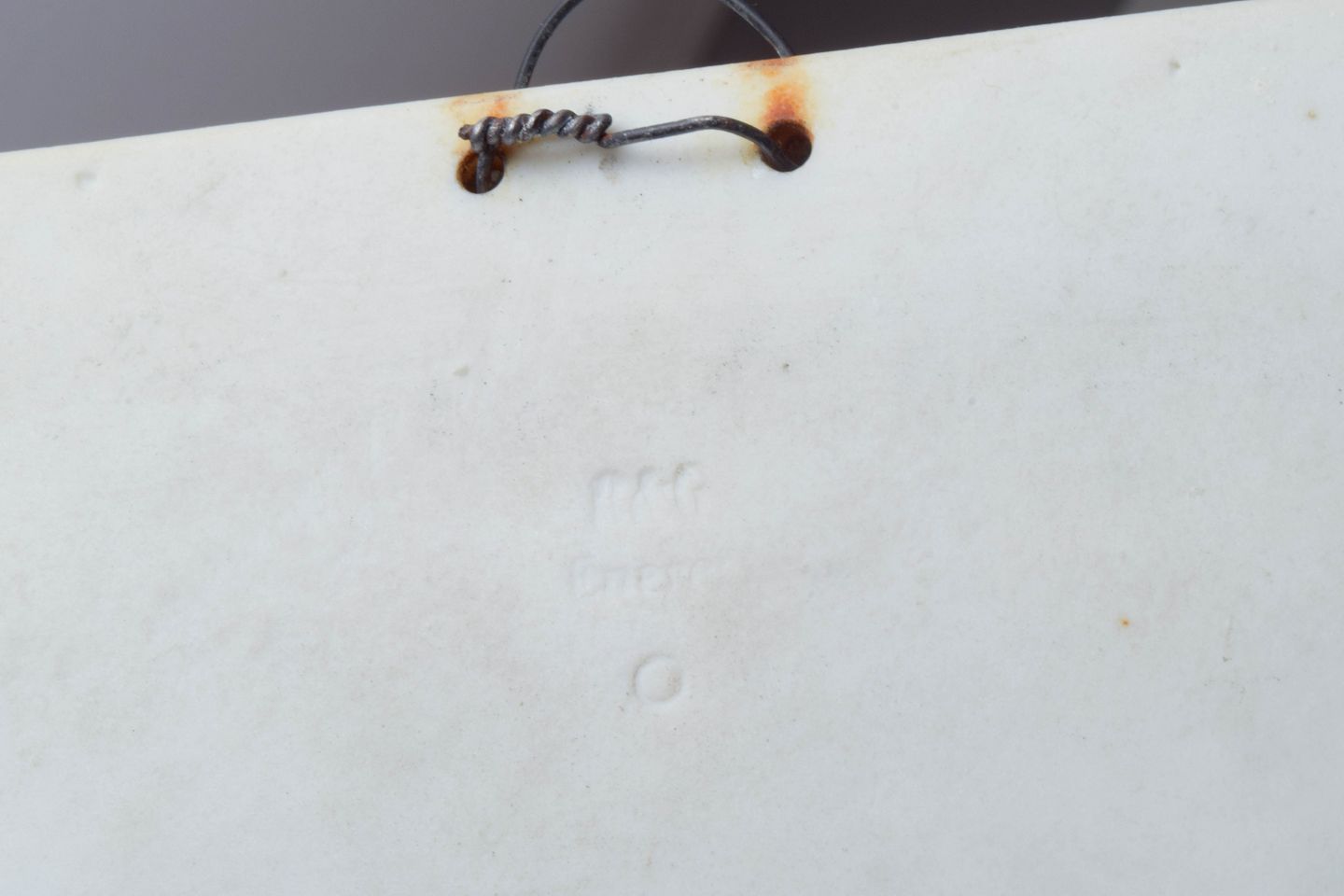 Rektangulært vægrelief i hvidt bisquitporcelæn med klassicistisk figurmotiv efter Bertel Thorvaldsen, udført med fine detaljer og blød modellering i nyklassicistisk stil.