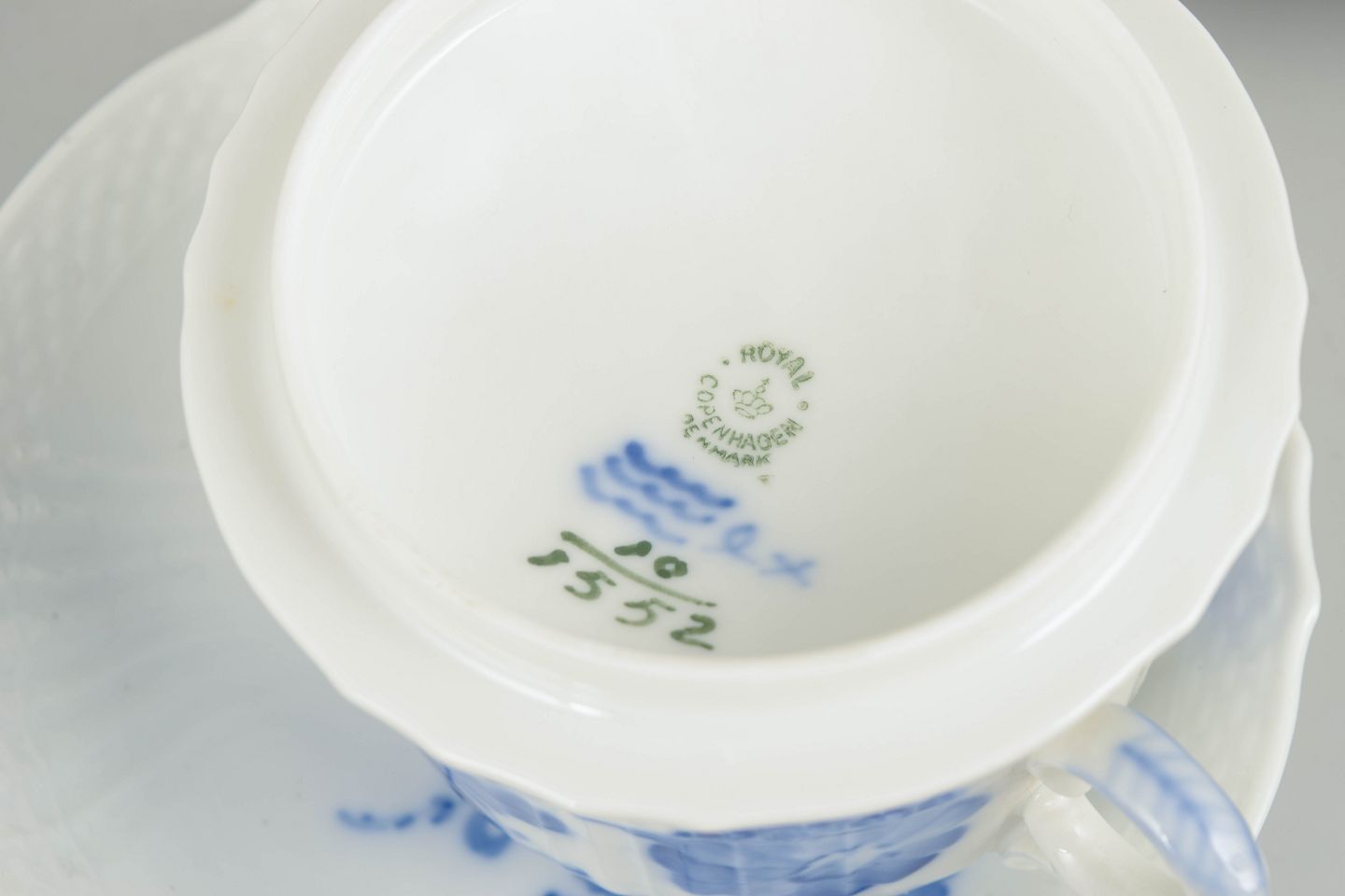Sjældent sæt af bouillonkopper med låg i porcelæn, dekoreret i det klassiske håndmalede Blå Blomst Svejfet mønster. Model 10/1552, første sortering, dateret 1962.