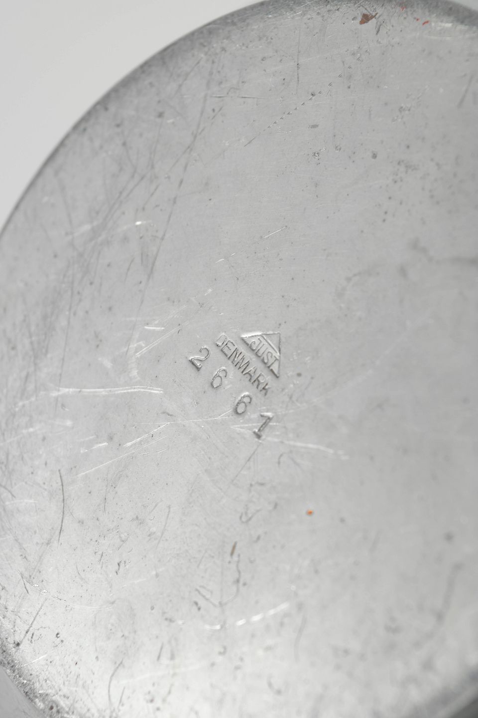 Kaffekande i tin med flettet hank og elegant, afrundet korpus udført i et stilrent art deco formsprog. Model 2661.