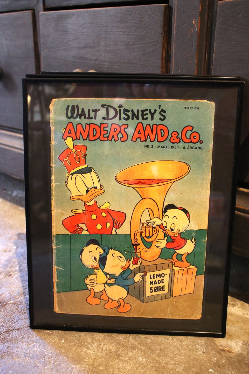 Dekorative , gamle Walt Disney Anders And blade fra årgang 1954 & 55 , er indrammet i sort ramme. 30x24cm...