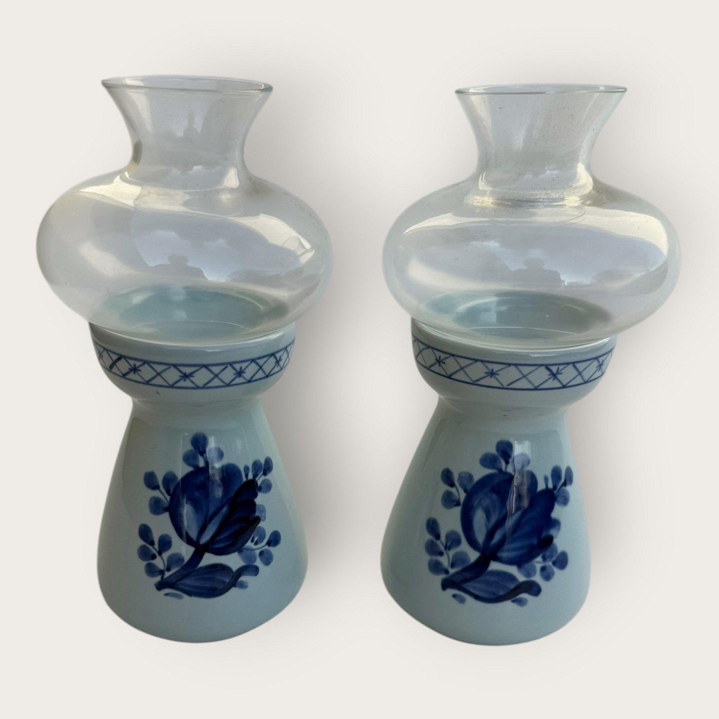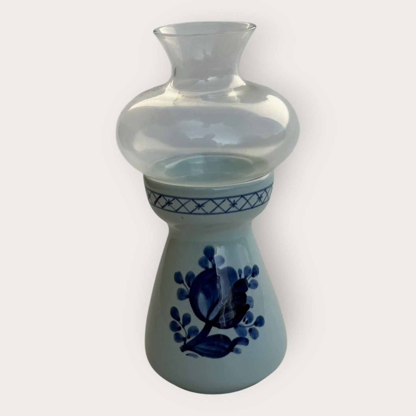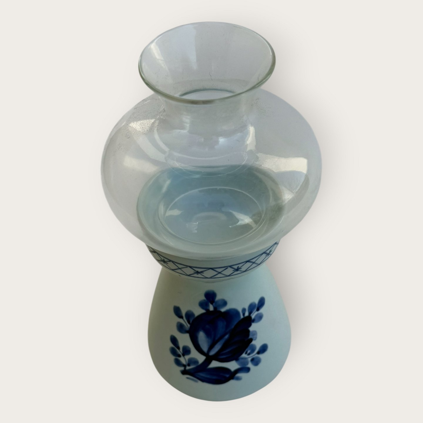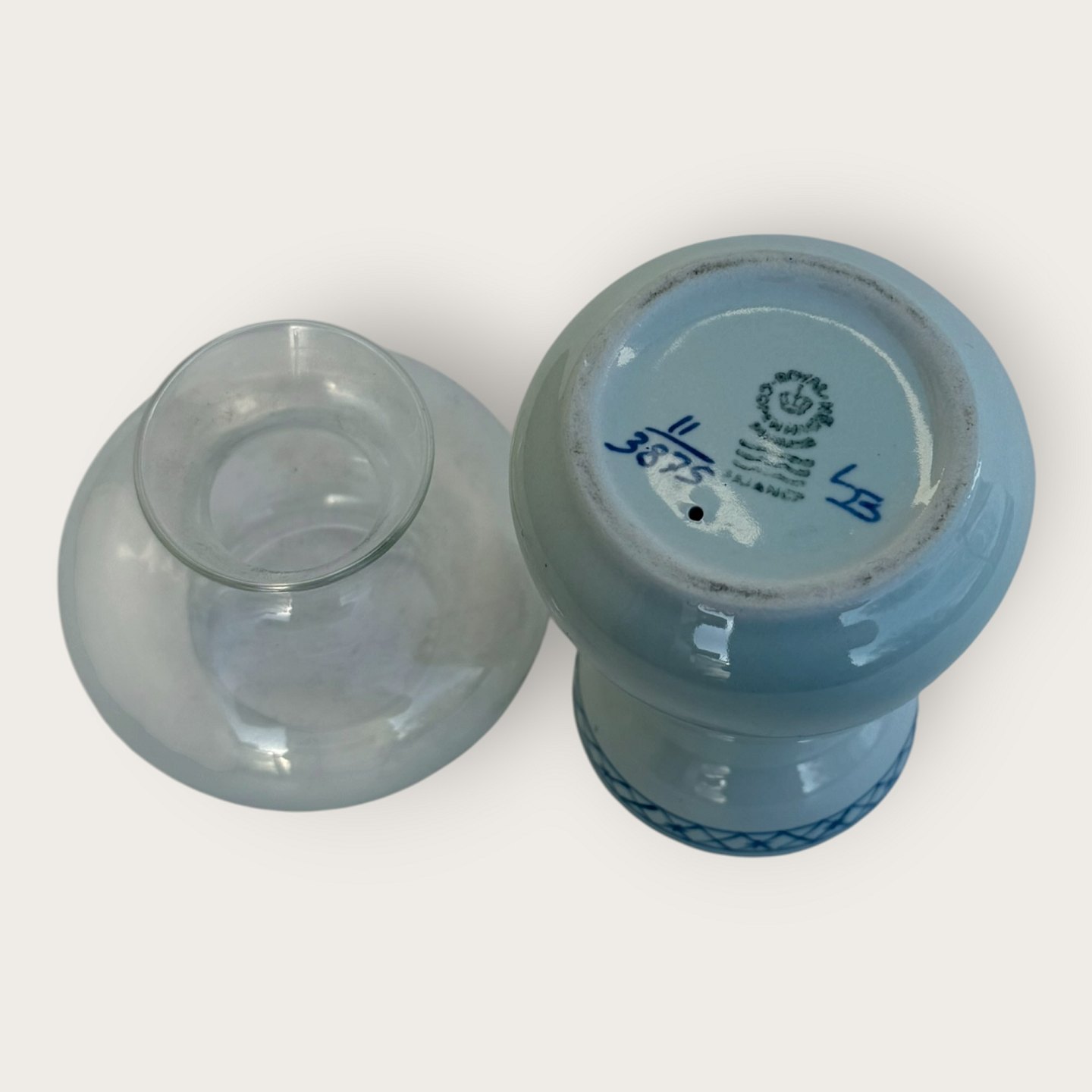 Royal Copenhagen, Ny Trankebar, Fyrfads lysestage med glaskuppel, 1.sortering, #11/ 3875, 17cm høj, 7,5cm i diameter, Design Christian Joachim *Pæn stand*