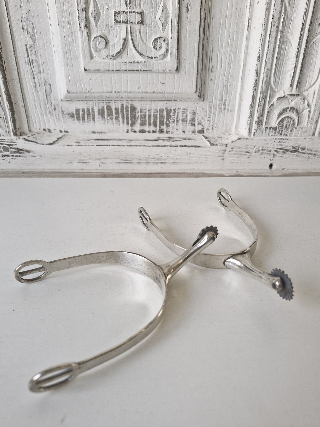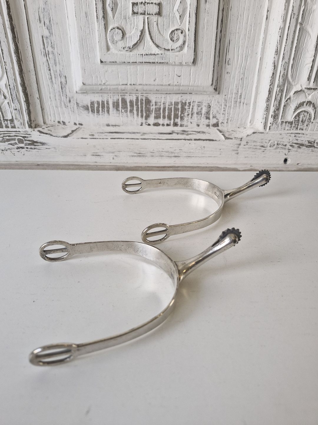 Pair of antique silver riding spurs