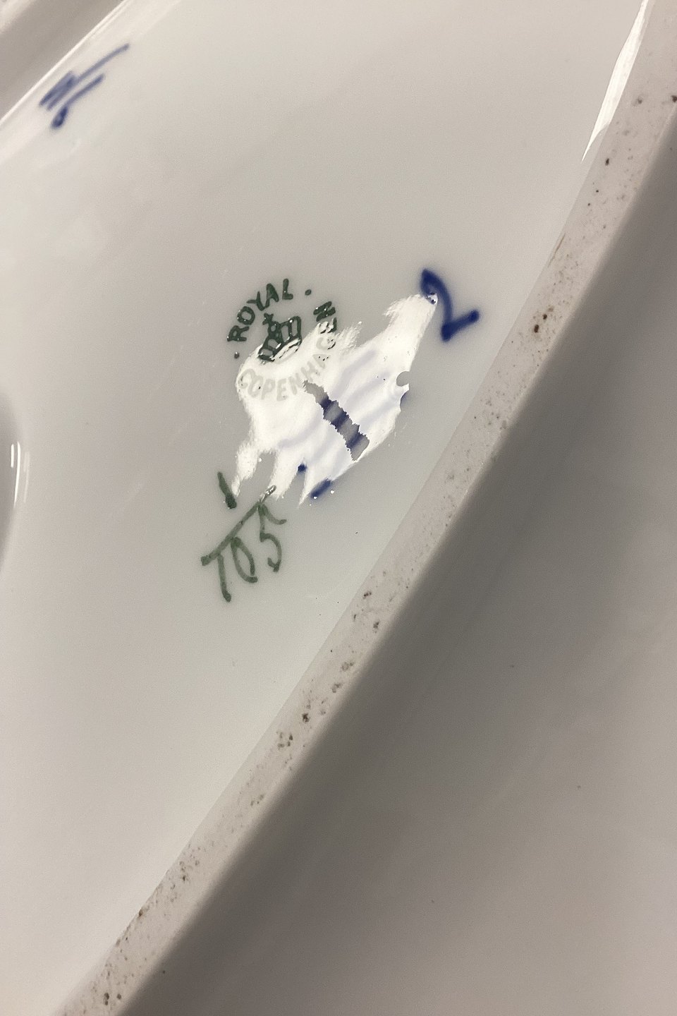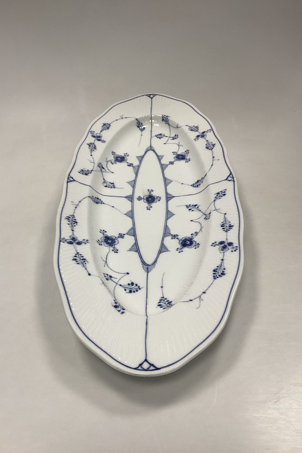 Royal Copenhagen Musselmalet Riflet Stort aflangt Fiskefad No. 105.
